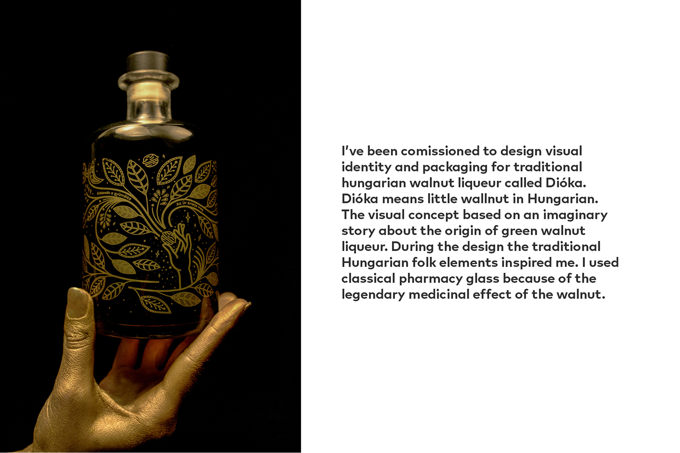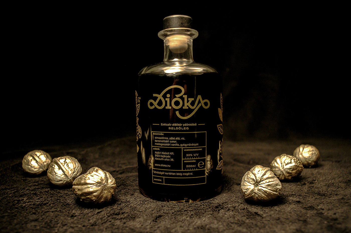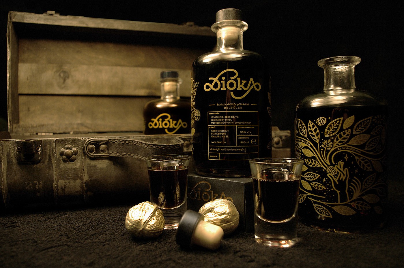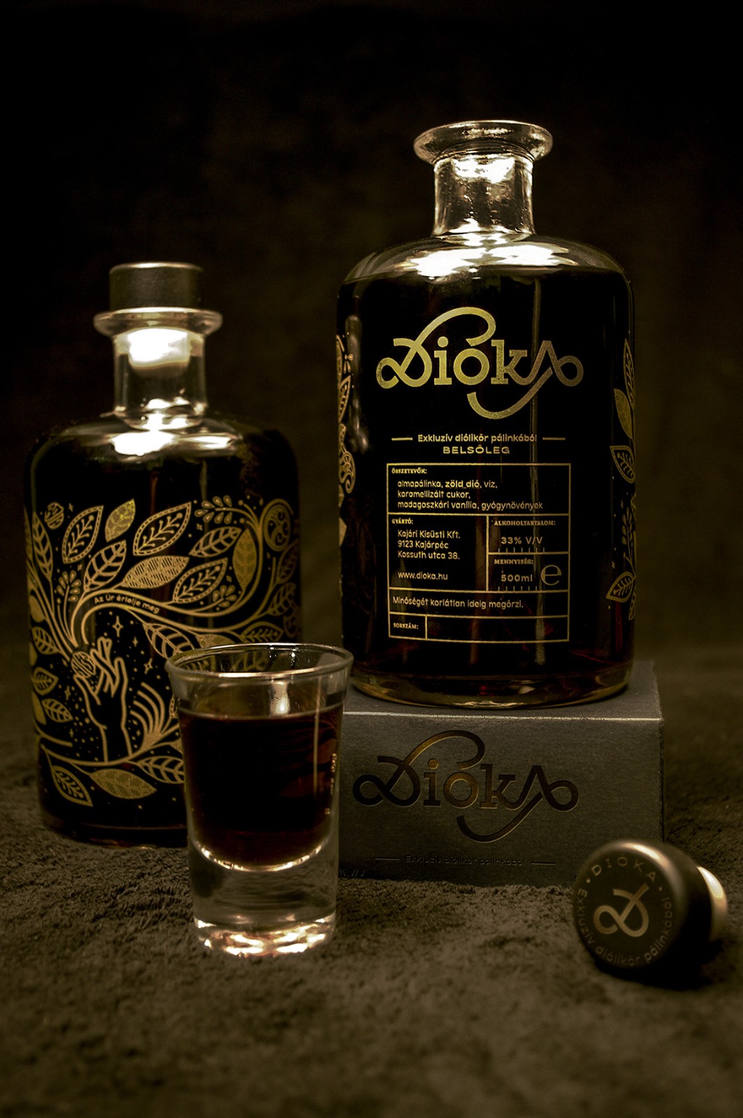 Dióka 的傳統(tǒng)匈牙利胡桃利口酒設(shè)計視覺識別和包裝。Dióka 在匈牙利語中的意思是小胡桃木。視覺概念基于一個關(guān)于綠核桃利口酒起源的虛構(gòu)故事。在設(shè)計過程中,傳統(tǒng)的匈牙利民間元素啟發(fā)了我。我用的是古典藥酒玻璃,因為核桃有傳說中的藥效。