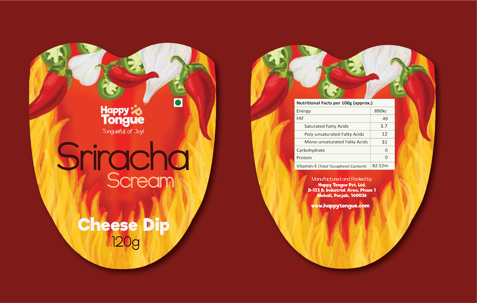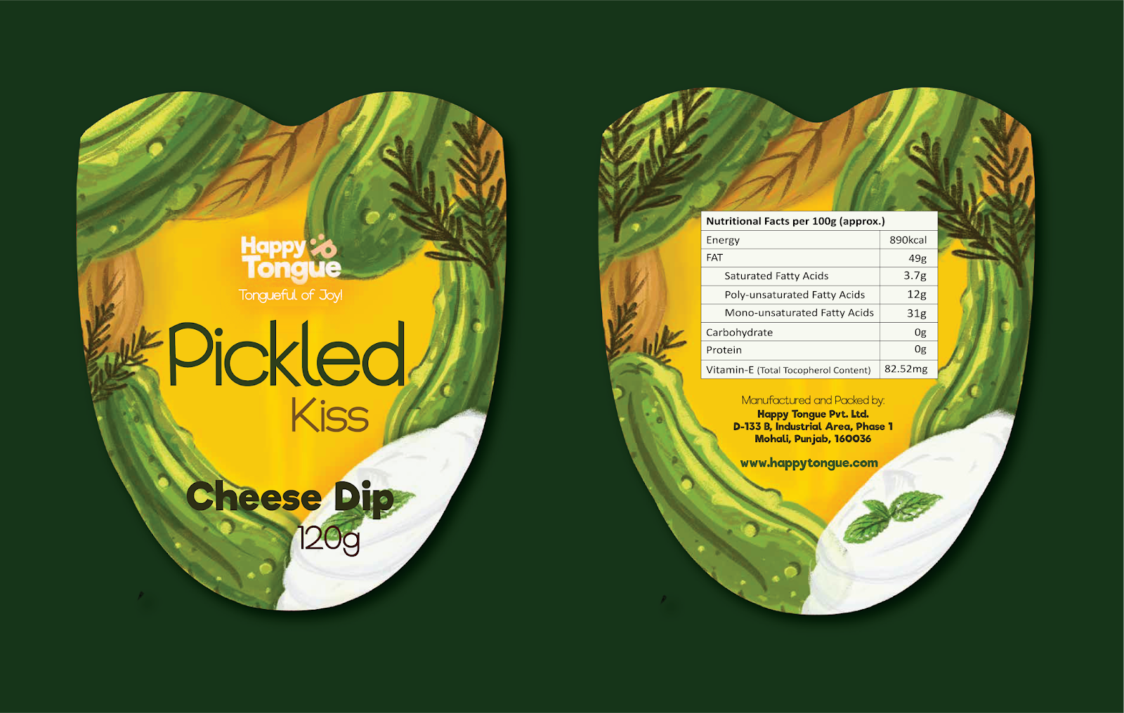 Happy Tongue 是一個(gè)提供印度墨西哥奶酪蘸醬的品牌。面臨的挑戰(zhàn)是制作一種反映品牌價(jià)值的包裝,以融入標(biāo)語(yǔ)“歡樂(lè)的舌頭”。為此,最后的罐頭做成了舌頭的形狀,這樣在打開(kāi)蓋子,取下罐頭頂蓋后,感覺(jué)就像是在扭動(dòng)舌頭,吃到好吃的東西后的表情。
