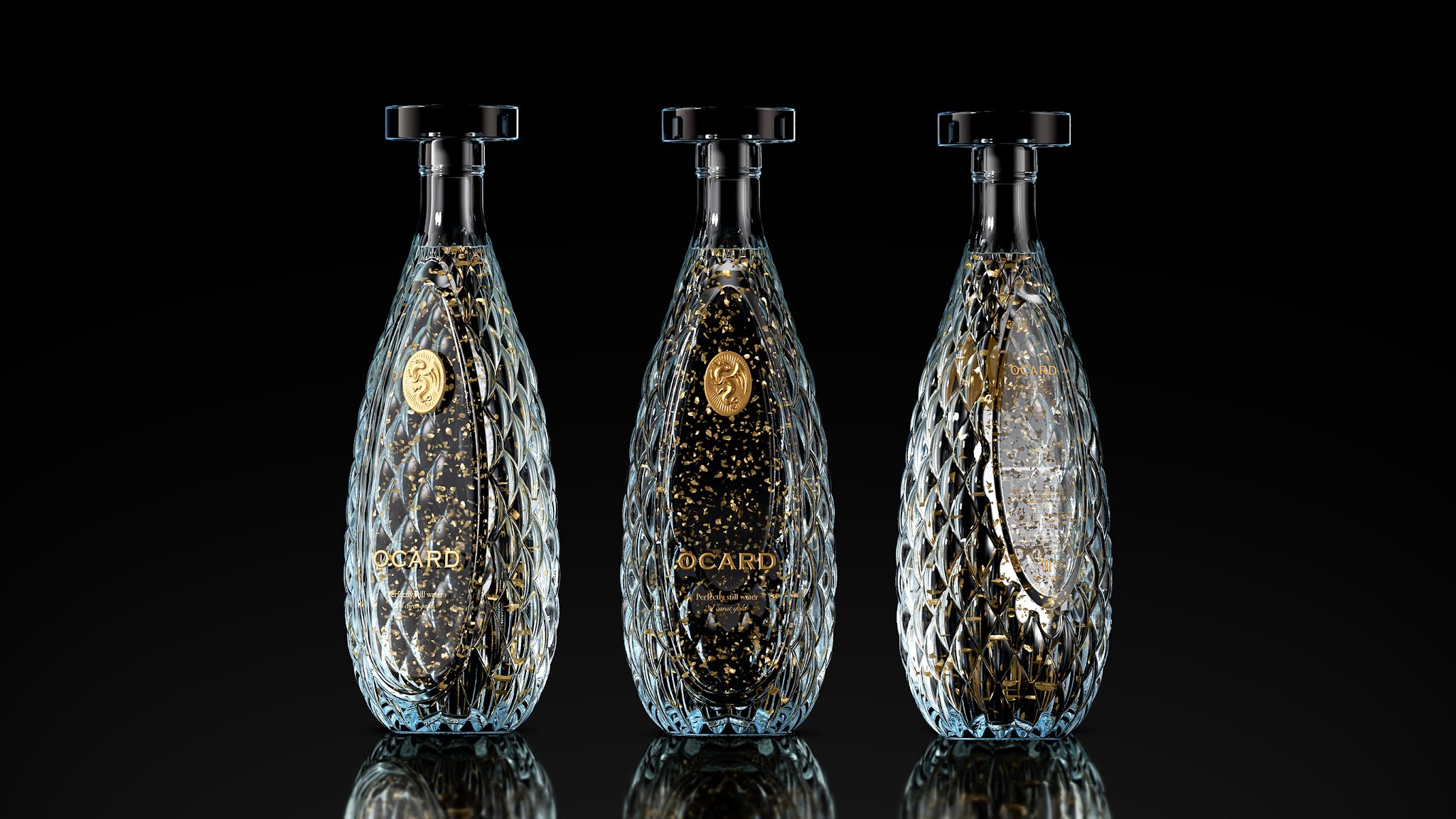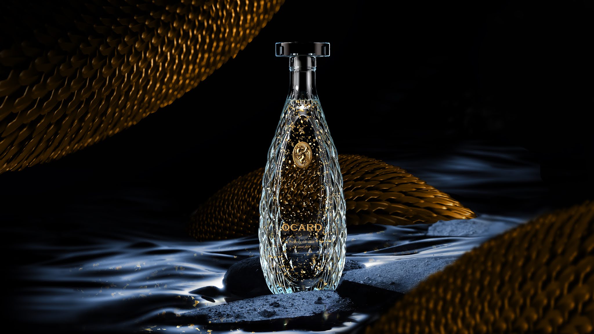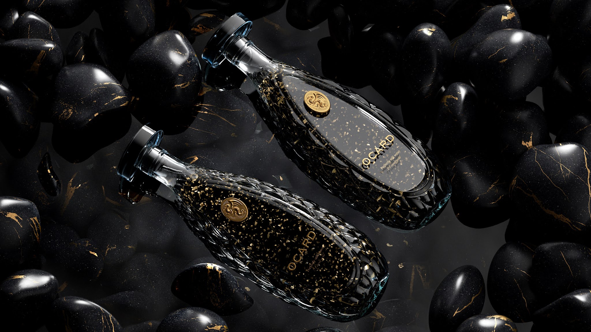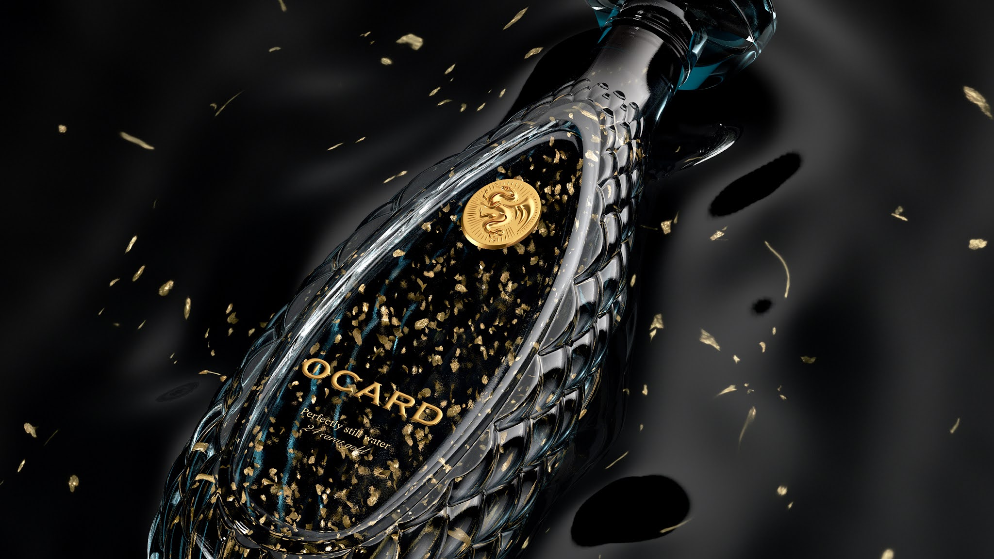 在烏茲別克斯坦有一個(gè)關(guān)于地下泉水由金龍守護(hù)的傳說。它的水里有金片,喝了它的人會獲得永恒的青春。我們將這一傳說視為黃金優(yōu)質(zhì)水的品牌故事。我們將品牌命名為Ocard,它是一種反向Draco。我們制作了一個(gè)獨(dú)特的玻璃瓶,上面覆蓋著“龍鱗”。上面幾乎什么也沒有:只有“o”字上有龍眼的標(biāo)志和有龍的獎?wù)隆?/p>
