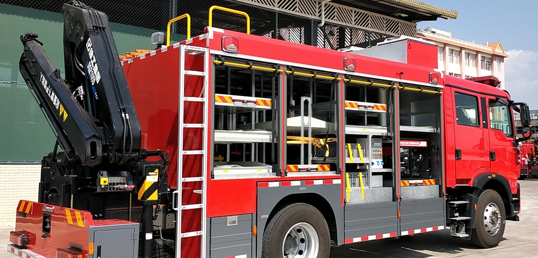 1.3 | 設備參數:發電機功率12.5KVA;升降照明燈功率4×1000W 金鹵燈;牽引絞盤額定拉力:7.5T;起重吊臂起吊重量:5T,工作半徑:8.3m;救援器材:100種。 | |