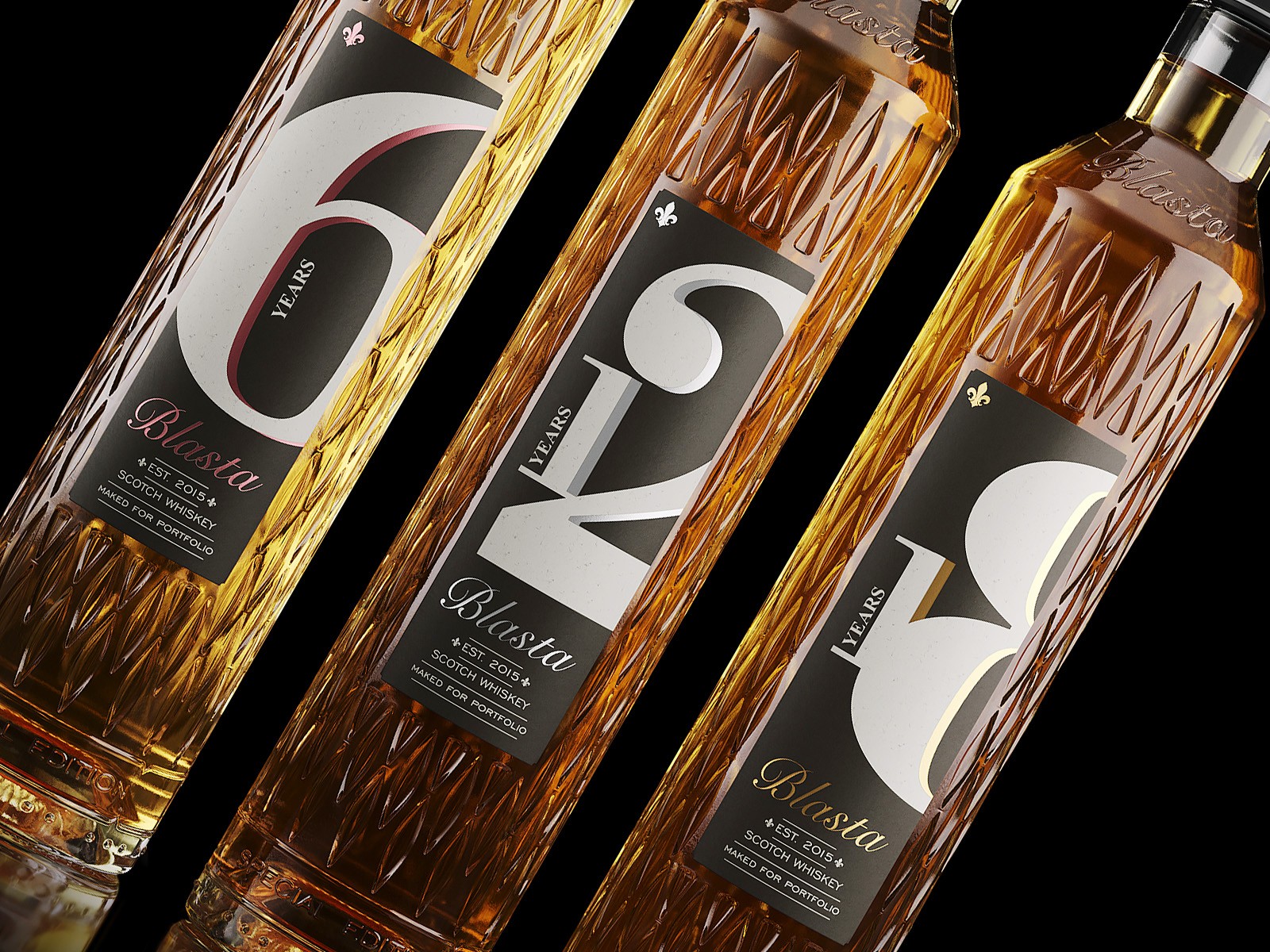 這個項目是由BOOBY創(chuàng)建的,作為學(xué)習(xí)瓶子和標(biāo)簽三維建模的一部分。在這里,我試著制作一個簡單的標(biāo)簽,一個簡單的瓶子形狀,這樣你就能理解設(shè)計的層次和簡單性。瓶子上的數(shù)字反映了威士忌的陳釀程度,數(shù)字越高,酒越濃,越陳?!癇lasta”這個名字來自愛爾蘭語的“美味”。因此,我想創(chuàng)造一種感覺,當(dāng)你喝威士忌時,你會感覺到同樣的“美味”難以忘懷的味道。我每次都想回到這里。標(biāo)簽上的每個數(shù)字都強調(diào)了暴露年份,一切都很簡單,位置也很明確。數(shù)字越高,味道越濃。飲料越貴。瓶子的設(shè)計和造型相當(dāng)簡單,沒有任何不規(guī)則的形狀。瓶子上有一個裝飾,與瓶子本身的形狀相得益彰。圓形的底座和細(xì)長的身體。我想它會很好地放在我的手里,當(dāng)把飲料倒進杯子里時,它的形狀會被皮膚舒服地感覺到。風(fēng)帽采用經(jīng)典款式。頂部和前部帶有壓花的鋁型材。帽子和標(biāo)簽因年份和裝飾顏色而異。例如,6年是青銅,12年是銀,18年是金。因此,消費者,買家可以很容易地決定在購買哪一年的飲料,他想買。哪一年對他更愉快,哪一年讓他更有品味?!癇lasta”不是每天都喝的威士忌,它是為快樂時刻喝的威士忌。