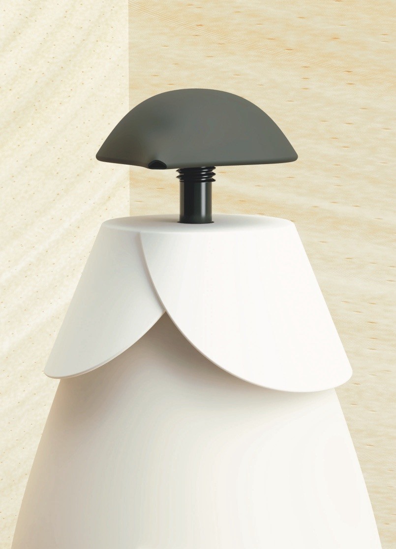 通過使用場(chǎng)景可以觀察到轉(zhuǎn)化為我的設(shè)計(jì)的松果的特性。每一瓶派恩洗手液都有一個(gè)“補(bǔ)充種子”,一個(gè)由雞蛋盒狀的再生紙制成的小袋,里面裝滿了粉末狀的洗手液。然后,用戶將粉末倒入瓶中,就像松果的鱗片將水輸送到莖部一樣,將粉末與水混合,在家中制作產(chǎn)品。這節(jié)省了運(yùn)輸重液體洗漱用品的成本和碳足跡。補(bǔ)充種子也可以單獨(dú)購買12粒種子的光盤,類似于派恩標(biāo)志。材料和形式創(chuàng)造了一個(gè)獨(dú)特和可持續(xù)的品牌機(jī)會(huì),因?yàn)榉N子可以用徽標(biāo)壓花,而不需要墨水打印,同時(shí)所需的法律信息可以包含在單個(gè)中央標(biāo)簽上。此外,光盤可堆疊,從而節(jié)省貨架空間。填充種子的整體設(shè)計(jì)在不同的變體中相似,只是顏色和標(biāo)簽設(shè)計(jì)不同。另一個(gè)常見的部件是蓋和泵系統(tǒng)。形狀相似,表面處理和顏色略有變化,降低了模具成本,因?yàn)橥荒>呖膳c不同的顏料顆粒重復(fù)使用。設(shè)計(jì)語言應(yīng)該散發(fā)出保護(hù)的感覺,瓶蓋幾乎包裹著瓶子,因?yàn)樗潭ㄔ谄款i上。將泵固定在瓶子上的螺旋運(yùn)動(dòng)也模仿了松果的分形結(jié)構(gòu),從上到下螺旋運(yùn)動(dòng)。致動(dòng)器為圓頂形,除了確保符合人體工程學(xué)的設(shè)計(jì)外,還將產(chǎn)品與競(jìng)爭(zhēng)對(duì)手區(qū)分開來,因?yàn)樵谙词职b設(shè)計(jì)中,分配器泵作為一個(gè)獨(dú)特的功能經(jīng)常被忽略。每種派恩洗手液有兩種尺寸:350毫升和700毫升