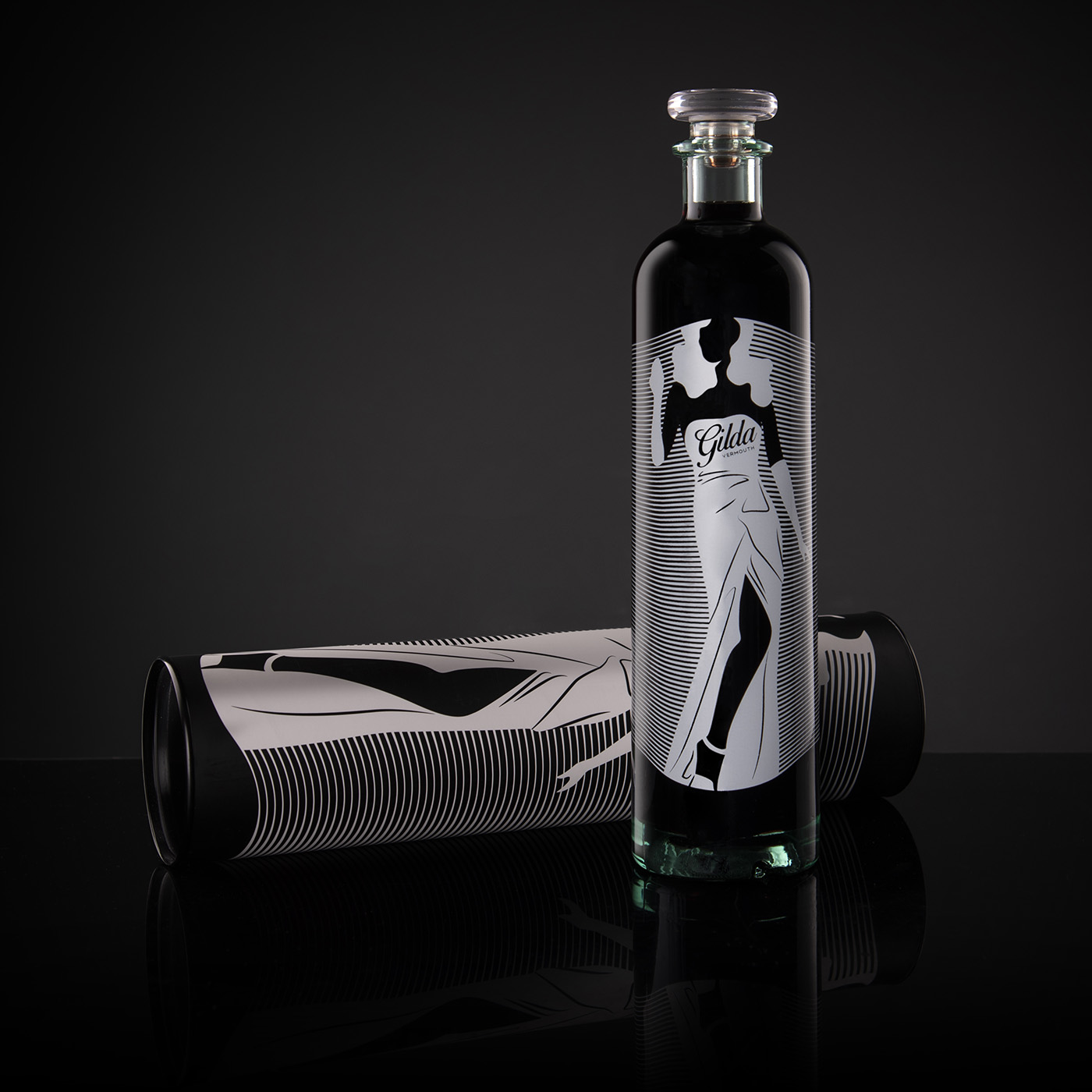 吉爾達是來自 Bodega Latarce 的新苦艾酒。她以麗塔海華絲主演的電影命名。設計靈感來自電影中主角的著名舞蹈,該舞蹈因誹謗而被許多國家禁止。為此,我們選擇了一個風格化的瓶子,并絲網(wǎng)印刷了輪廓以及具有“莫爾”效果的線條,并賦予整體活力,因為當瓶子移動時,人物似乎也在移動??喟朴邪咨姹荆O計相同,但采用黑色絲網(wǎng)印刷。為瓶身加冕,vinolok 瓶蓋與刻字一起使這款瓶身成為一款原創(chuàng)而優(yōu)雅的套裝。