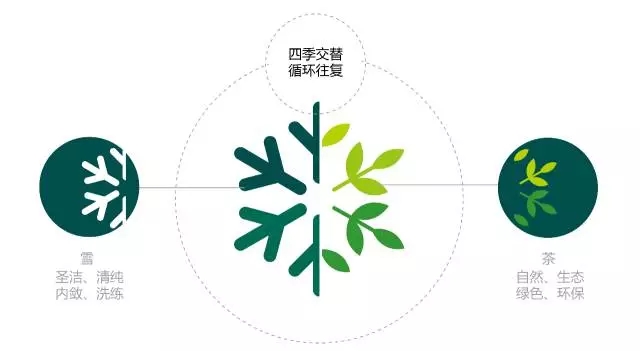 標(biāo)志從“雪宜茶聲”中提煉“雪”和“茶”一白一綠兩個(gè)元素,一個(gè)代表著圣潔與莊嚴(yán),一個(gè)詮釋著清幽與芬芳;一個(gè)演繹出冬的內(nèi)斂與洗練,一個(gè)洋溢著春的蓬勃與喜悅。將二者有機(jī)結(jié)合,亦雪亦茶,意在傳達(dá)一種清新悠然的雅趣,雋永綿長的氣質(zhì),內(nèi)外和諧的境界。