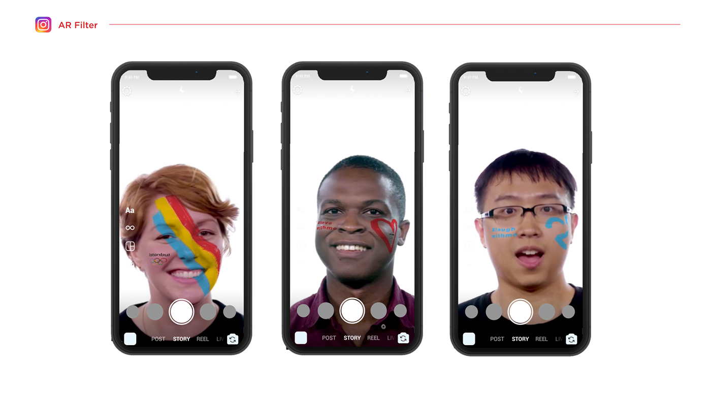 在創(chuàng)建的 Instagram 過濾器中,我們看到參加奧運(yùn)會(huì)的觀眾以不同形式的口號(hào)與我同行。