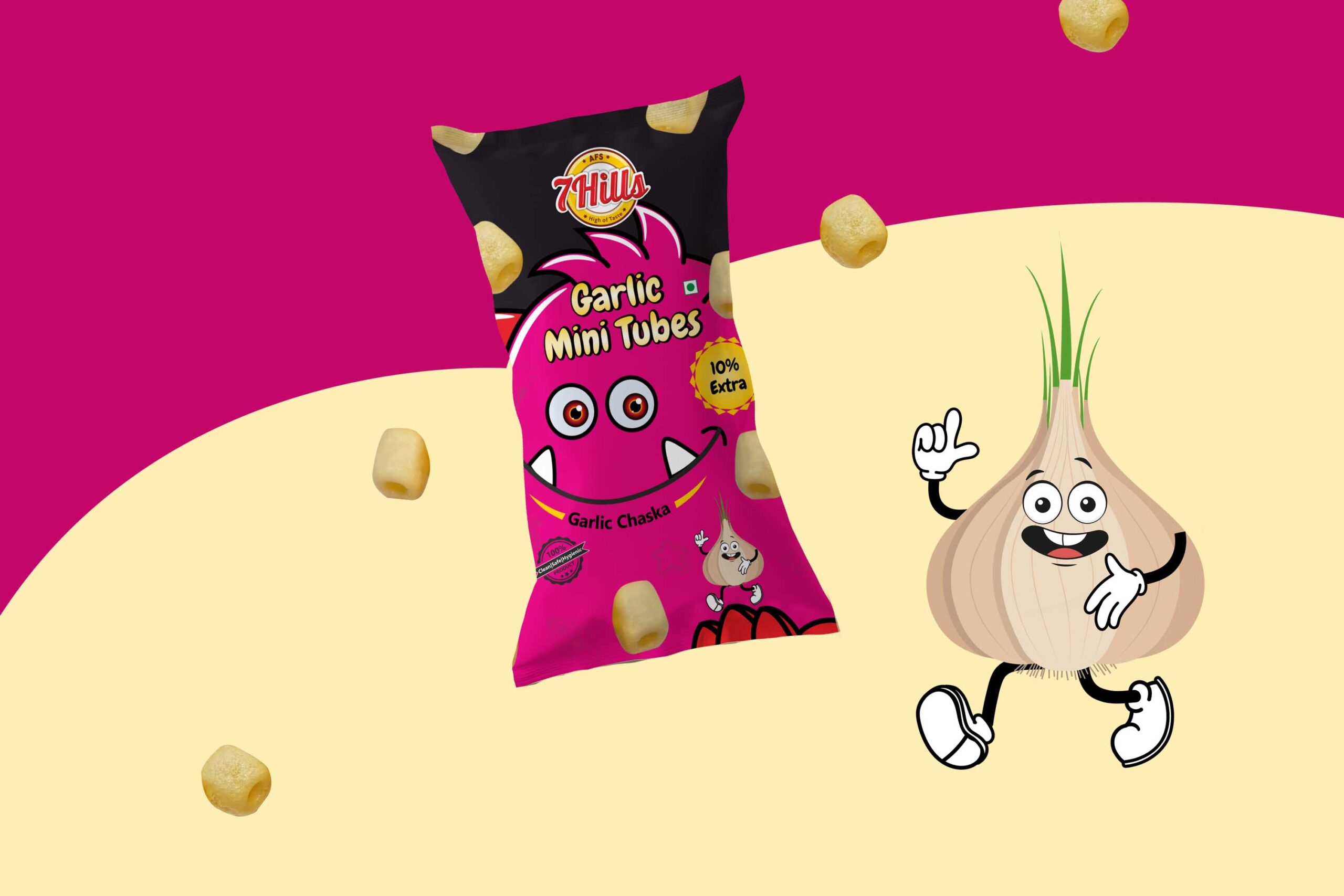 大蒜迷你管:這個(gè)包裝的設(shè)計(jì)考慮了令人垂涎三尺的大蒜味道。包裝上的人物是一個(gè)可愛(ài)的大蒜,它是通過(guò)繪畫(huà)創(chuàng)作的。這個(gè)設(shè)計(jì)的中心人物是粉紅色的。