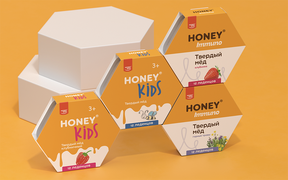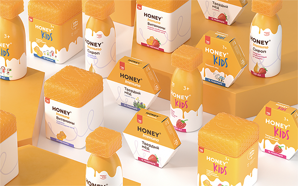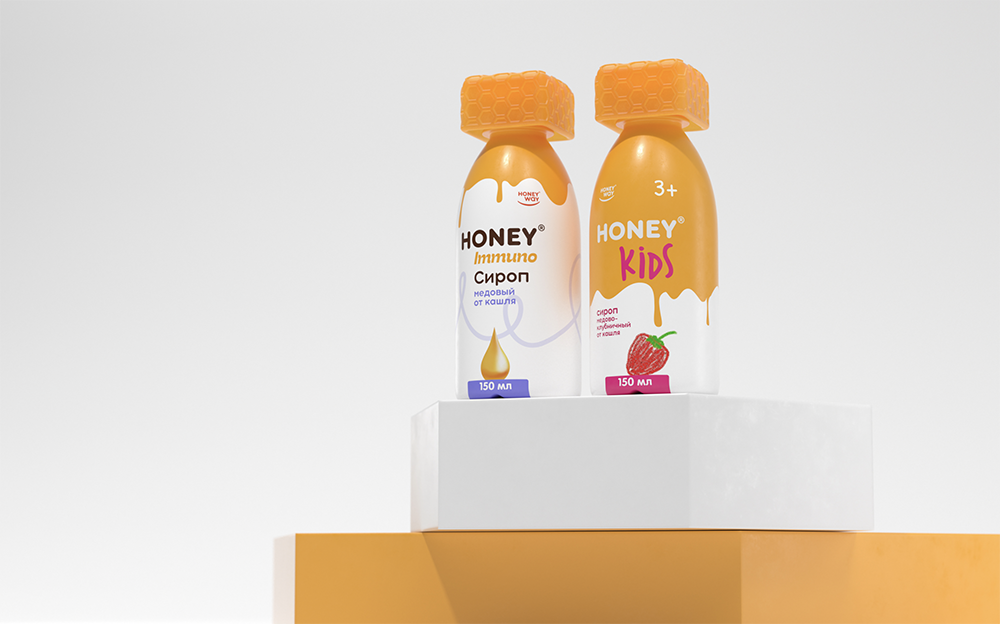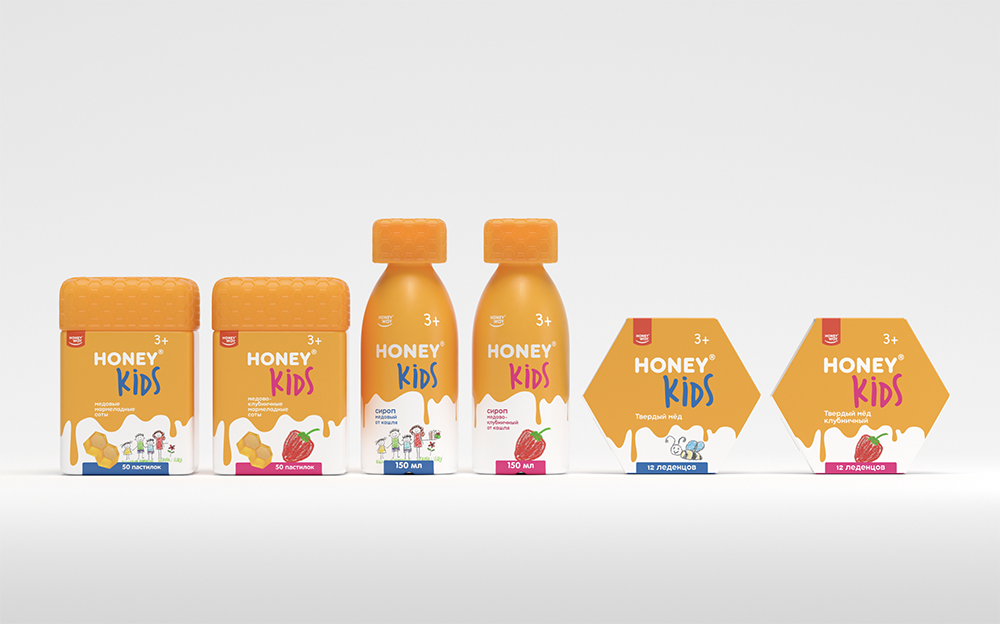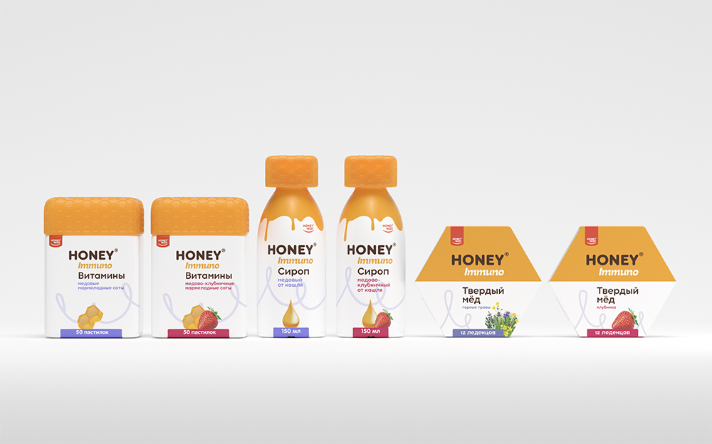 Yes, you are quite right: these goodies are 99% pure honey, a natural remedy! Such a product requires honey sweet packaging. Also, in order to stress the product′s remedial properties, we had to lean towards the medical look. At the same time, we had to preserve the balance between the drugstore and the daily consumption concepts. And you know what? We can say with confidence that our team managed to find the honey equilibrium!