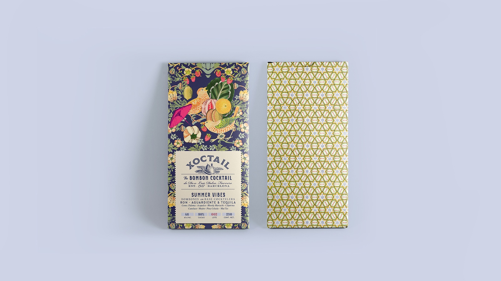 雞尾酒底巧克力包裝設(shè)計(jì)。靈感來源于威廉·莫里斯(1834-1896)的圖案。挑戰(zhàn)在于通過獨(dú)特大膽的口味,將非常傳統(tǒng)的產(chǎn)品與現(xiàn)代時(shí)尚的外觀結(jié)合起來。重塑傳統(tǒng)。
