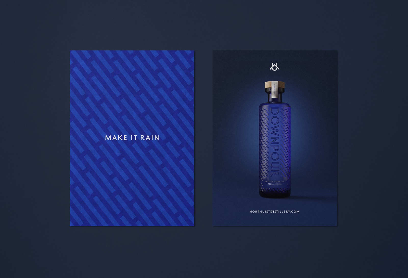 Alongside the new bottle, the studio developed a series of promotional materials to help the distillery launch Downpour to the world with the ‘Make It Rain’ campaign supporting Downpour Gin’s mission to drench the world in island flavour.