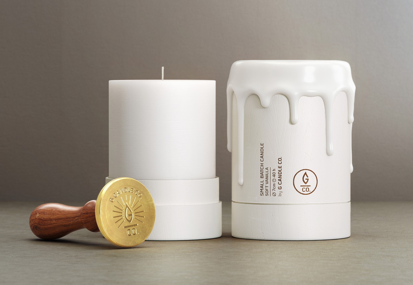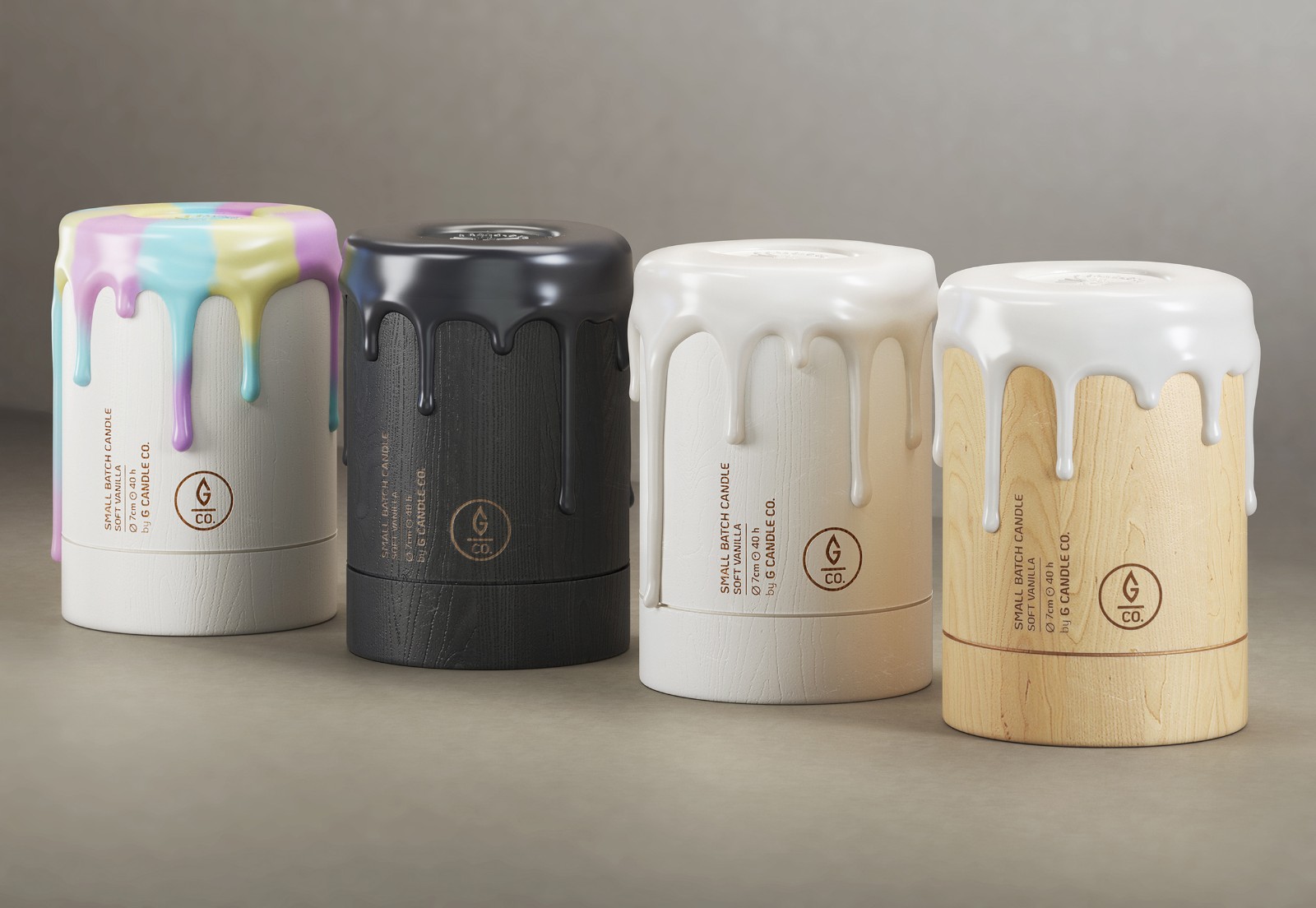 在目前競(jìng)爭(zhēng)非常激烈的蠟燭市場(chǎng)中,很難在包裝方面進(jìn)行產(chǎn)品差異化。G Candle Company 是一家小批量生產(chǎn)具有天然香氣和獨(dú)特身份的香薰蠟燭系列。生產(chǎn)過(guò)程中的每一步都經(jīng)過(guò)精心控制。每支蠟燭都是手工傾倒和制作的,具有迷人的設(shè)計(jì),對(duì)于喜歡手工商品的人來(lái)說(shuō)很有吸引力。選擇木制圓柱形包裝來(lái)傳達(dá)其天然產(chǎn)品,并通過(guò)浸入密封蠟制成,以在頂部形成獨(dú)特的蠟燭淚珠蠟流外觀。這種迷人的設(shè)計(jì)可以通過(guò)蠟或木缸的多種混合和改變顏色來(lái)增強(qiáng)。頂部添加了蠟封印章以突出其品牌,并帶有一個(gè)簡(jiǎn)單的G標(biāo)志,其圖形就像蠟燭火焰形狀。