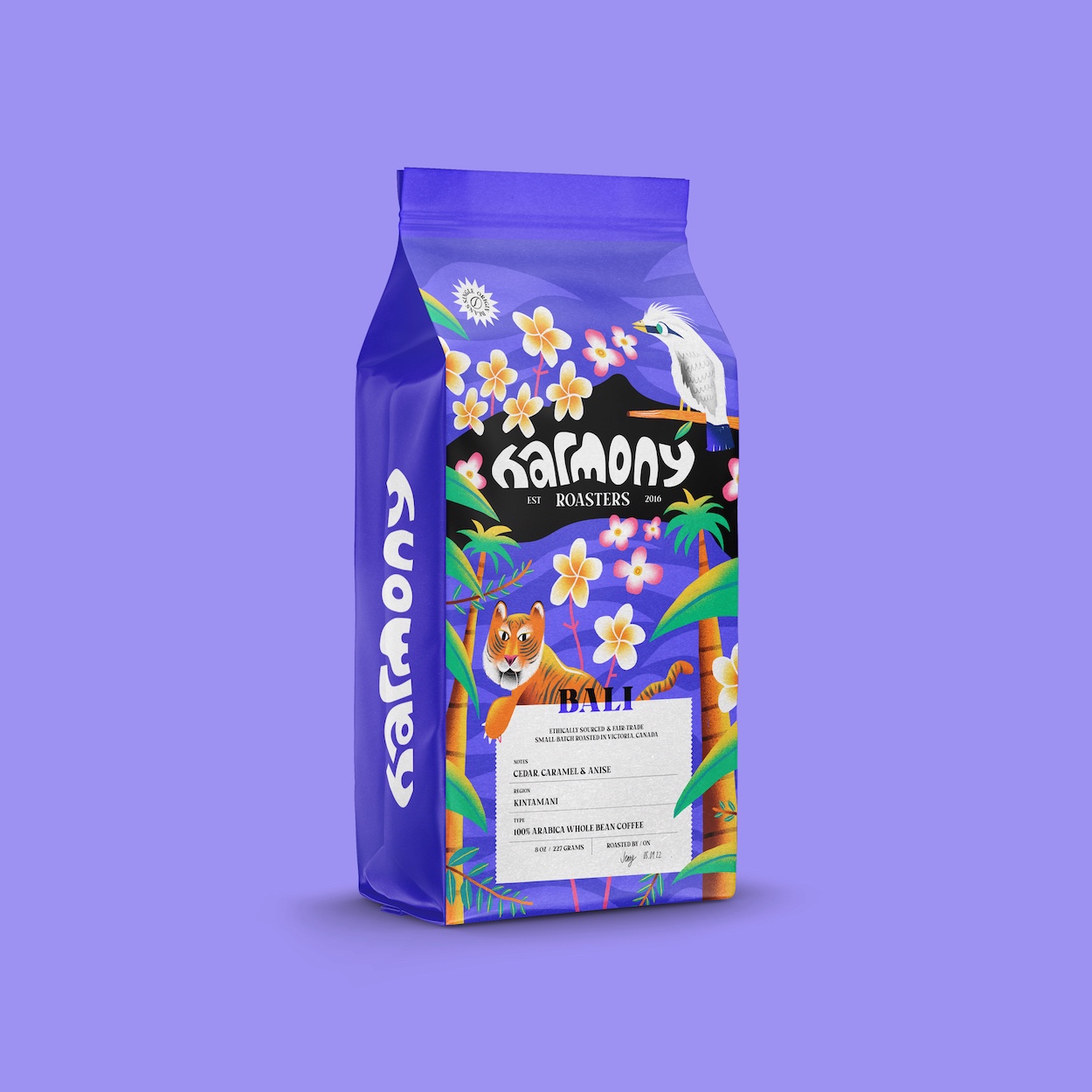 Harmony Roasters is a concept for a sustainable coffee company that features plants and wildlife from various regions of the world that are endangered.Harmony Roasters是一家可持續(xù)發(fā)展咖啡公司的理念,該包裝設計創(chuàng)意以世界各地瀕臨滅絕的植物和野生動物為主題,色彩艷麗,風格時尚。