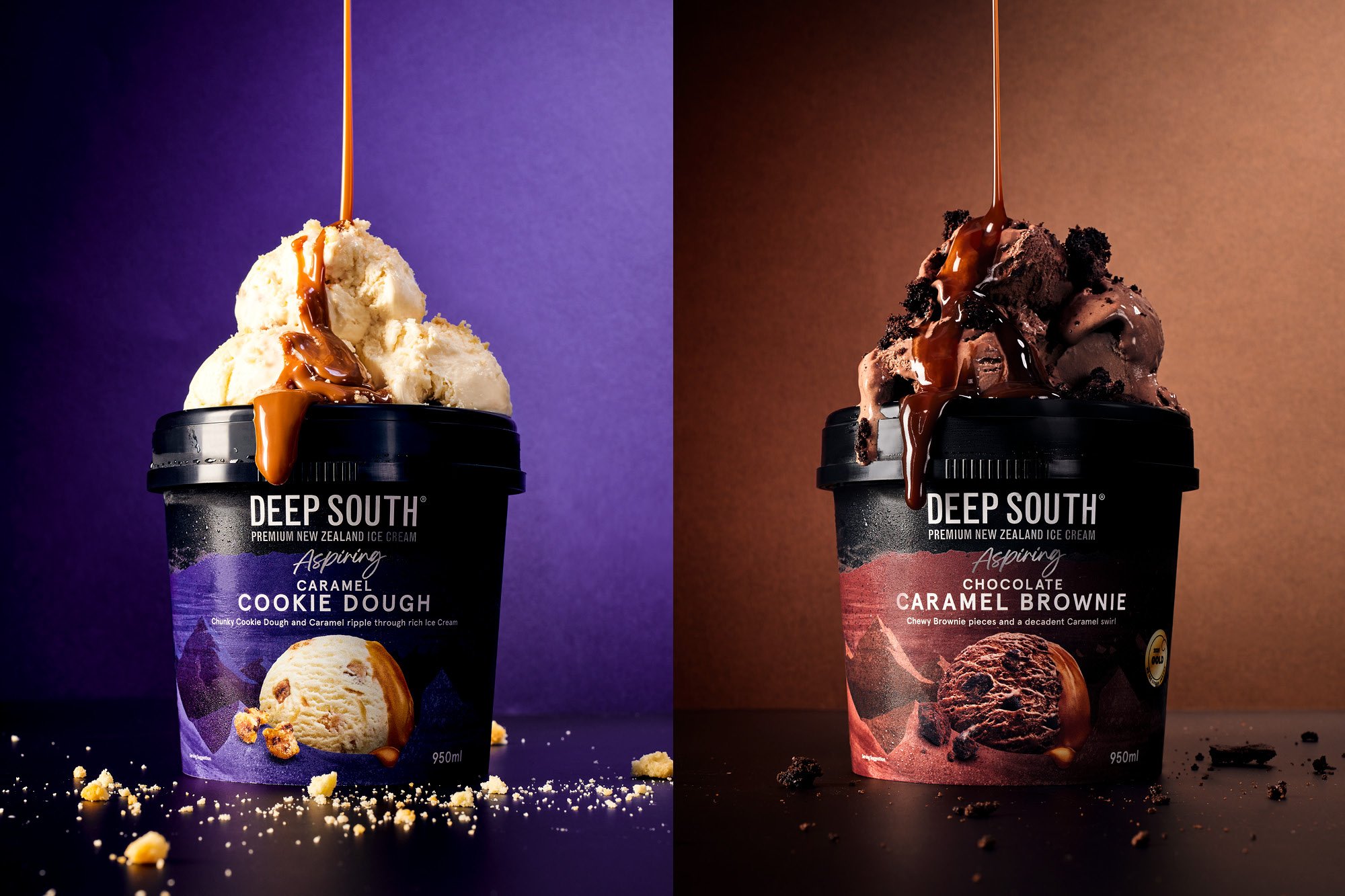 Deep South冰淇淋于1978年在新西蘭南島成立,現(xiàn)已成為一個(gè)標(biāo)志性品牌,擁有多種口味和風(fēng)格,迎合了廣大消費(fèi)者的需求。它目前的設(shè)計(jì)風(fēng)格已經(jīng)成為一種標(biāo)志性的,雖然有些笨重,但帶有圖片明信片南島風(fēng)景的風(fēng)格。這些說(shuō)明了該國(guó)的起源和自豪感,但在傳達(dá)包裝信息和靜音顏色編碼方面往往很有挑戰(zhàn)性。