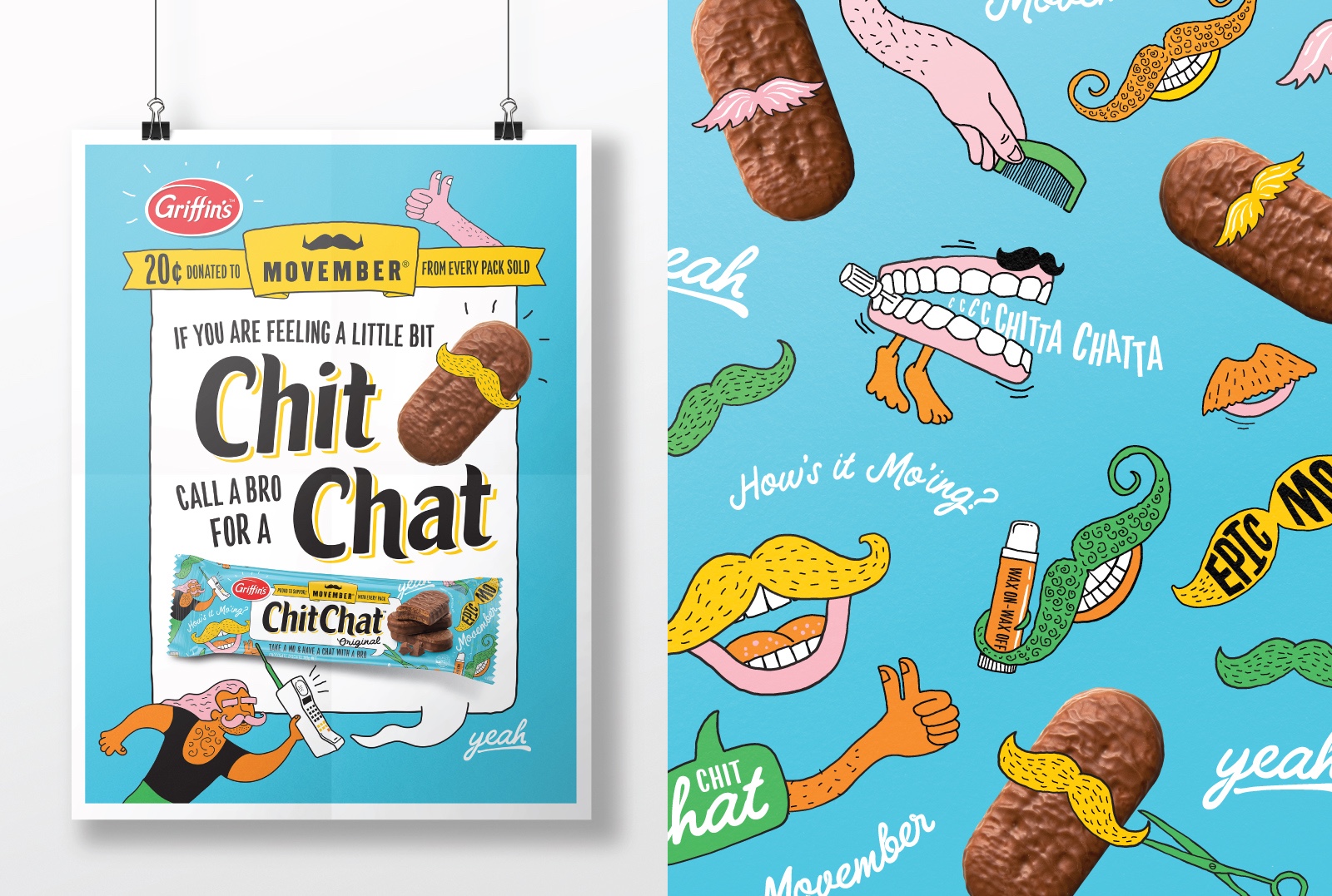 Movember是一家慈善基金會,每年11月舉辦一次蓄胡子活動,以提高人們對男性健康問題的認識?;顒拥囊粋€重點是鼓勵關于男性健康的公開對話,當新西蘭最大的餅干品牌之一格里芬決定通過他們的聊天餅干系列支持這一活動時,這場活動創(chuàng)造了一個完美的組合。