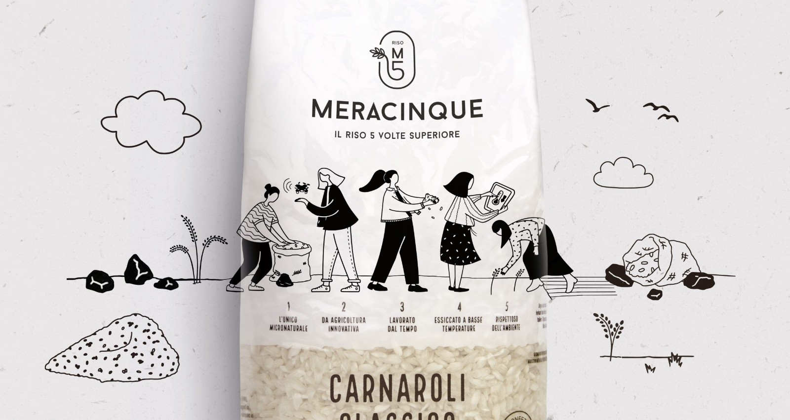 Meracinque 項目是幾年前由 Silvia、Benedetta、Vittoria、Anna 和 Margherita 發(fā)起的:五位姐妹在共同的熱情的驅使下,多年后決定改變自己的職業(yè)道路,共同努力實現(xiàn)她們的夢想最好的 Carnaroli 米飯。直到幾個月前,Meracinque 大米還只在 Horeca 市場上銷售,在意大利最著名的廚師那里獲得了巨大的成功。為什么不擴大規(guī)模,讓消費者享受這些獨特的谷物呢?因此,CBA 意大利隊首先與西爾維婭會面,然后與其他姐妹會面。