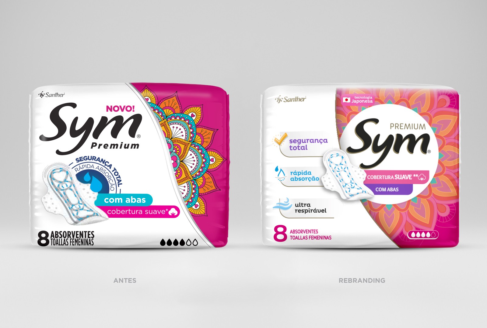 Santher 在家居產(chǎn)品和個人護(hù)理市場擁有穩(wěn)固的領(lǐng)導(dǎo)地位,并決定通過重新設(shè)計包裝使其 Sym 品牌現(xiàn)代化,從而適應(yīng)新的定位。