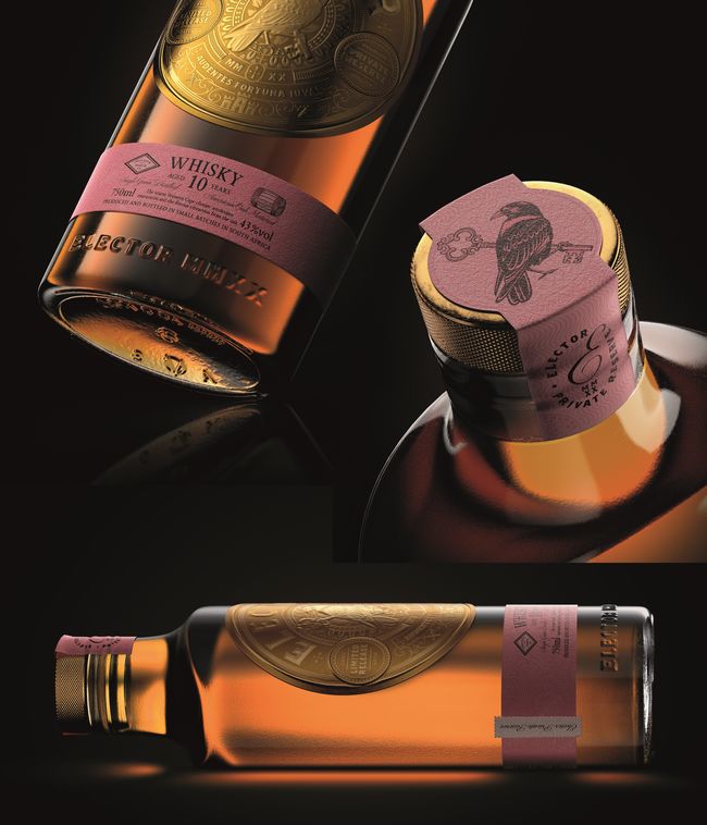 從克魯格朗硬幣中汲取靈感,該標(biāo)簽采用了艾利丹尼森的Fasson Dull箔金FSC和Fasson棉白120g/m,并結(jié)合了數(shù)字印刷、Kurz Luxor箔燙印和平板壓花。瓶子是Estal的TR Hotrod 70cl型號(hào),瓶蓋也是由Estal提供的。