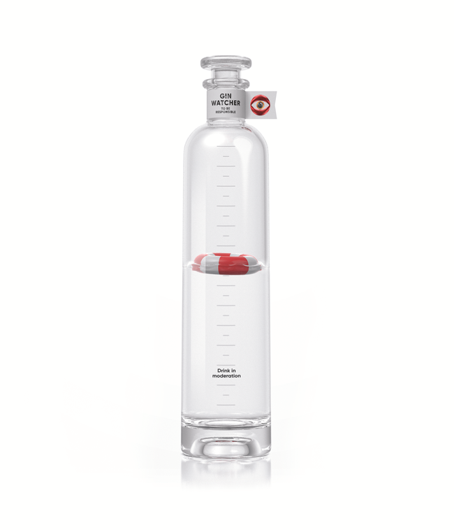 西班牙機(jī)構(gòu)Supperstudio的杜松子酒理念基于負(fù)責(zé)任的飲酒。當(dāng)瓶子排空時(shí),分級(jí)瓶(Estal的Philos模型)內(nèi)的救生圈下降?!帮L(fēng)格化的瓶子形狀和高度為展示測(cè)量標(biāo)記以及里面的救生圈提供了一個(gè)理想的平臺(tái)。”