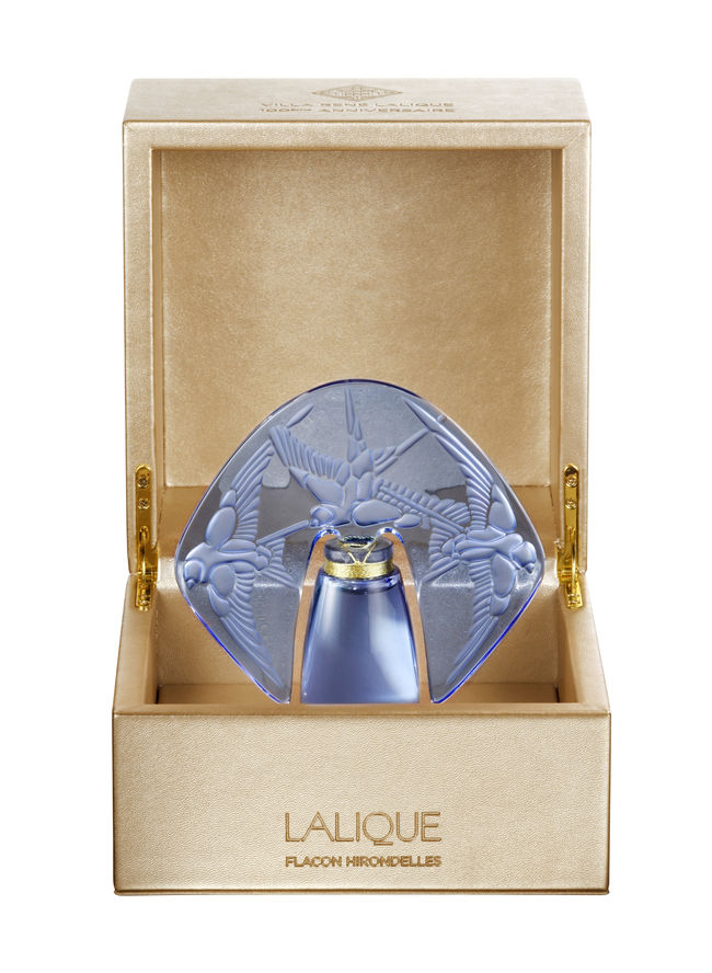 水晶制造商 Lalique 著名的 Hirondelles 香水瓶的寶藍(lán)色珍藏版慶祝 Réné Lalique 在法國(guó) Wingen-sur-Mer 的別墅建成 100 周年。