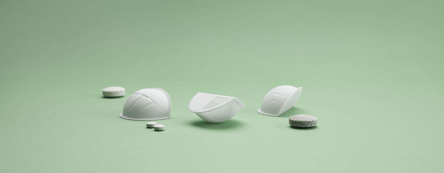 作為 Trific 協(xié)作包裝項目的一部分創(chuàng)建的旅行套裝將干化妝品包裝在成型纖維外殼中。該原型在六個月內(nèi)開發(fā)完成,旨在展示協(xié)作如何加速開發(fā)新型可持續(xù)高端美容包裝,以替代硬質(zhì)塑料。