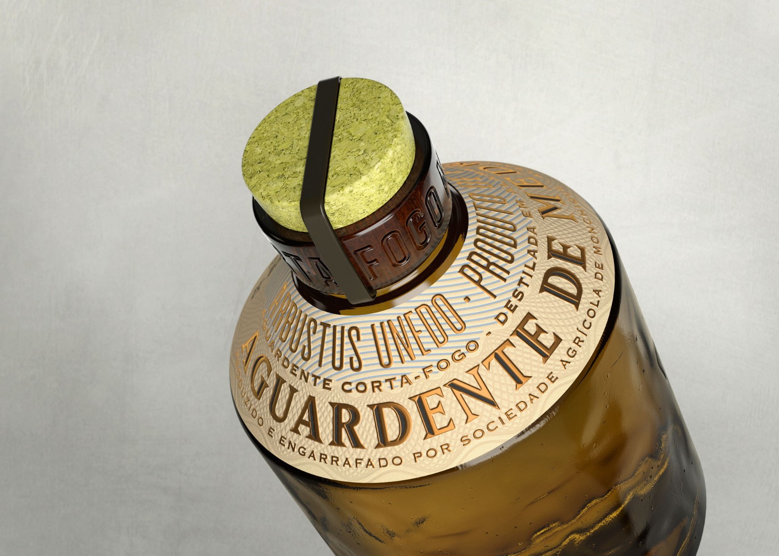 BRAVA 的創(chuàng)作過程是流動(dòng)和動(dòng)態(tài)的,采用非線性方法。我以清晰的愿景開始了這個(gè)項(xiàng)目,最終的設(shè)計(jì)忠實(shí)于最初的草圖。瓶子設(shè)計(jì)的起點(diǎn)和第一個(gè)元素,使其成為標(biāo)簽創(chuàng)建過程的有趣旅程。另一方面,命名被推遲到項(xiàng)目結(jié)束時(shí),當(dāng)時(shí)我偶然發(fā)現(xiàn)了一篇關(guān)于 medronho 樹如何在葡萄牙防止火災(zāi)的報(bào)紙文章。