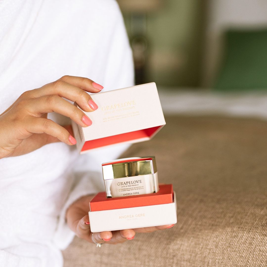 “我們從開始到結束都在跟蹤Andrea Gere護膚品的原材料。化妝品公司通常會購買他們的油,而我們會看到葡萄藤開花,全年種植,收獲葡萄,用它們釀酒,然后立即干燥和研磨種子。因此,我們對葡萄制成的一切都很著迷”——品牌所有者Andrea Gerre解釋道。