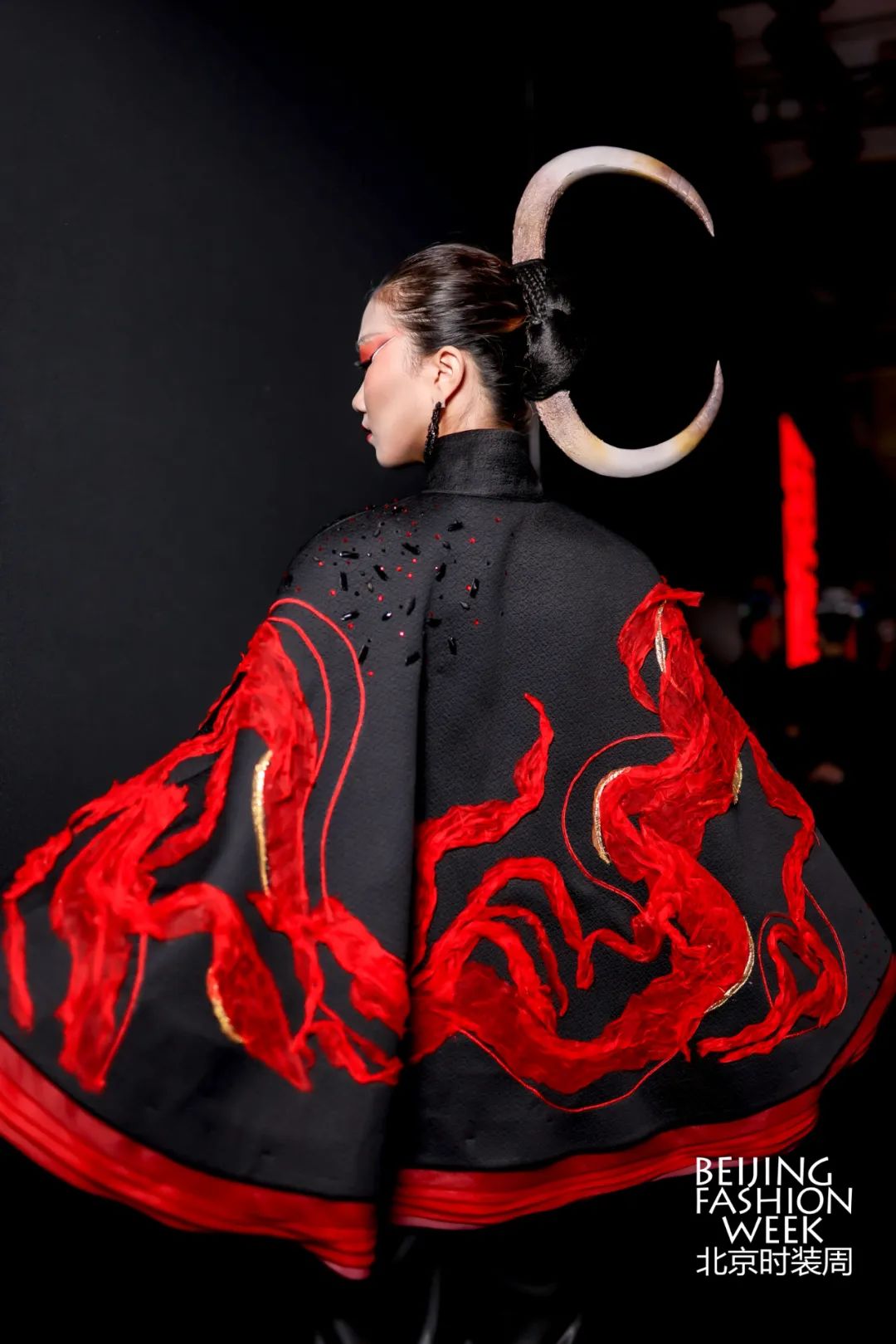秀場上的服飾更是精美絕倫。精美的盤金繡和珠繡、優(yōu)美的廓形與精致的細節(jié),再搭配多層次的民族風格銀飾,含蓄的東方韻致蘊含其中。這些服飾既傳承了民族特質,又融合了現(xiàn)代美感,每一件都充滿了深刻而豐滿的內涵。