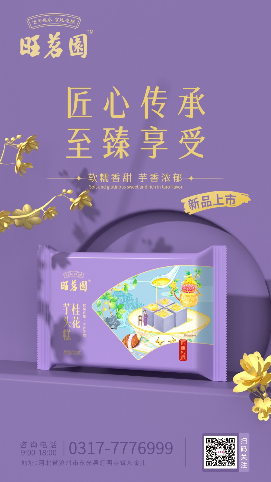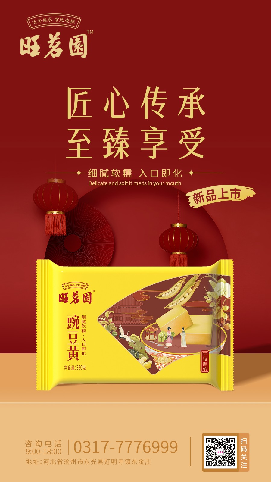 豌豆之韻,宮廷之味。旺茗園每一塊糕點(diǎn)都蘊(yùn)含著初心和匠心,一段傳奇的故事,激勵(lì)著一代又一代人追求精湛技藝和卓越品質(zhì)的信念。中華美食是民族文化最重要的組成部分,不僅代表了飲食習(xí)慣和風(fēng)土人情,還承載著“飲和食德”的哲學(xué)思想。守人間至味、傳美食之道,旺茗園始終堅(jiān)持“傳承百年工藝,打造品質(zhì)美食”的品牌初心,以弘揚(yáng)中華美食文化為使命,打造具有民族底蘊(yùn)的世界品牌。