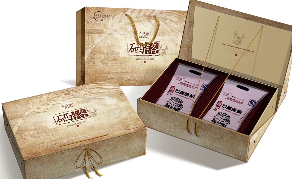 項目背景:立達(dá)康高檔面粉禮盒,將優(yōu)質(zhì)天然富硒面粉高檔化、禮品化,成為走訪親友饋贈佳品。禮盒整理設(shè)計風(fēng)格樸素自然,主色調(diào)貼近谷物裸色,背景融入磨盤等谷物加工制作形象手繪插畫,更添生動情趣,表現(xiàn)原始自然的風(fēng)采。