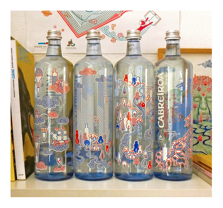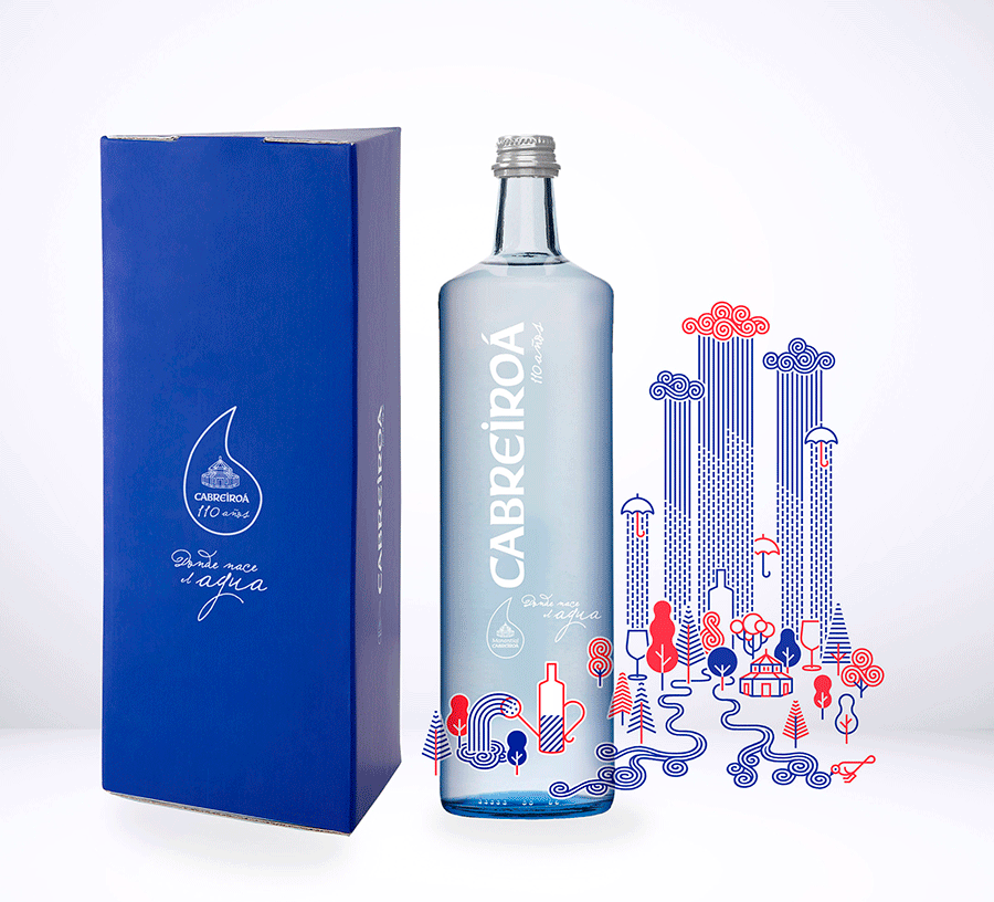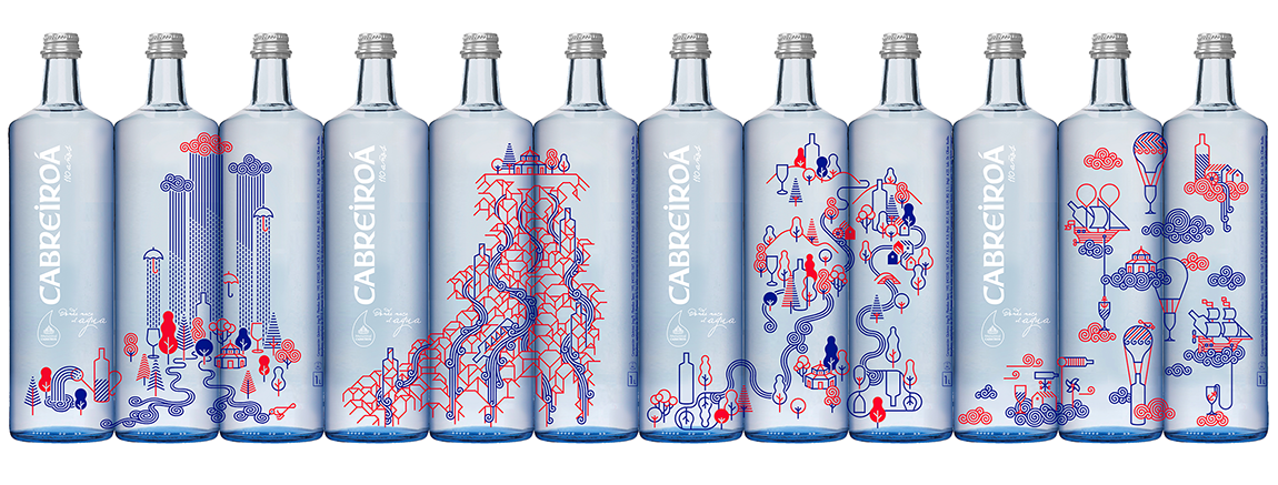 與Imaxe機(jī)構(gòu)合作,我很高興地展示了四瓶限量版的,帶有以造型技術(shù)為靈感的圖案,使用公司色彩,藍(lán)色和紅色。每種設(shè)計都與水的來源有關(guān):天空、雨水、植被和巖石。