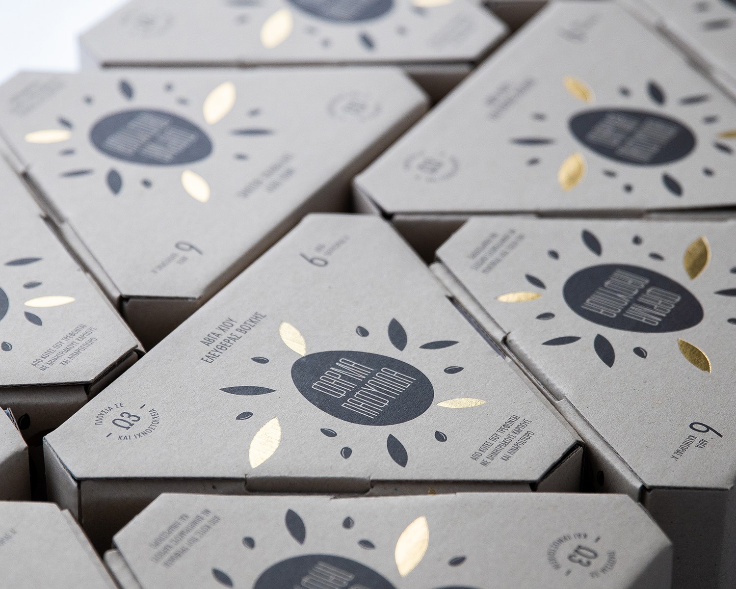 Pafylida農(nóng)場的迅速發(fā)展創(chuàng)造了設計其新包裝的需要??紤]到產(chǎn)品的營養(yǎng)價值,我們設計了獨特的、現(xiàn)代的包裝,具有獨特的形狀和美學,反映了公司的新時代。其目的是創(chuàng)建一個實質(zhì)上是現(xiàn)有包裝的演變的包裝,以便Pafylida農(nóng)場將繼續(xù)與競爭對手區(qū)分開來。因此,在回收的瓦楞紙上設計了一個三角盒,采用金箔沖壓印刷技術,突出了產(chǎn)品的高質(zhì)量。