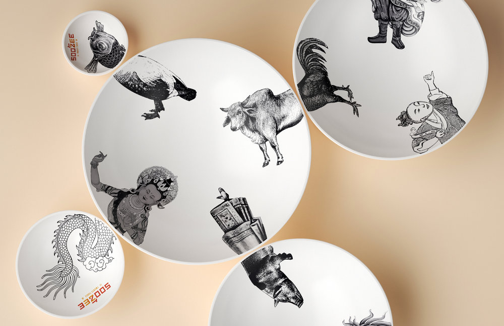 創(chuàng)作方法被要求以一個名字、標志、身份創(chuàng)造、圖形、服裝、菜單、餐具、網(wǎng)站和包裝來讓Soo Zee 23的故事生機勃勃。Soo Zee成為一個多形式的人物,代表著23種草藥和香料混合在一起的藝術(shù),創(chuàng)造出一種你永遠不會忘記的正宗牛肉面湯?!?/p>