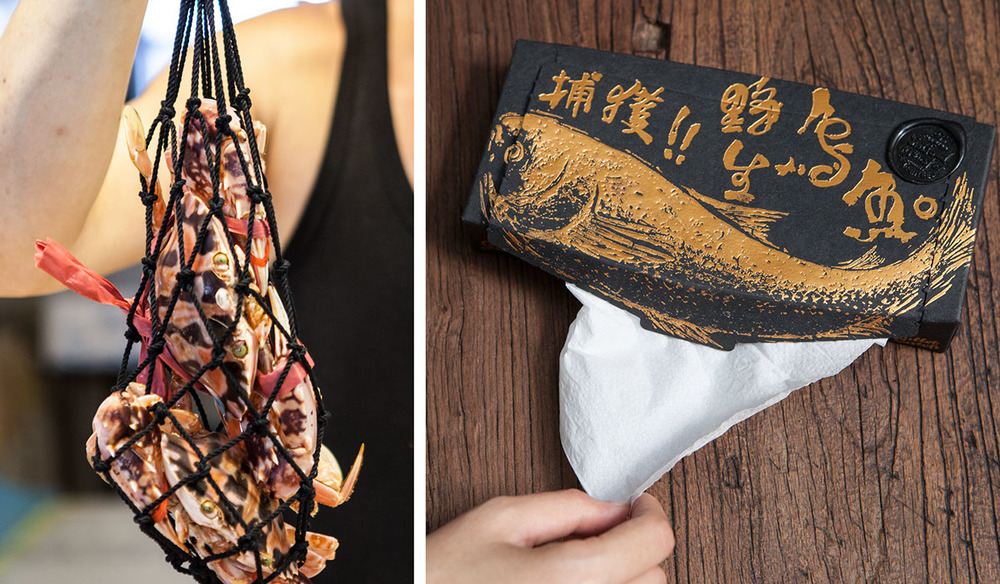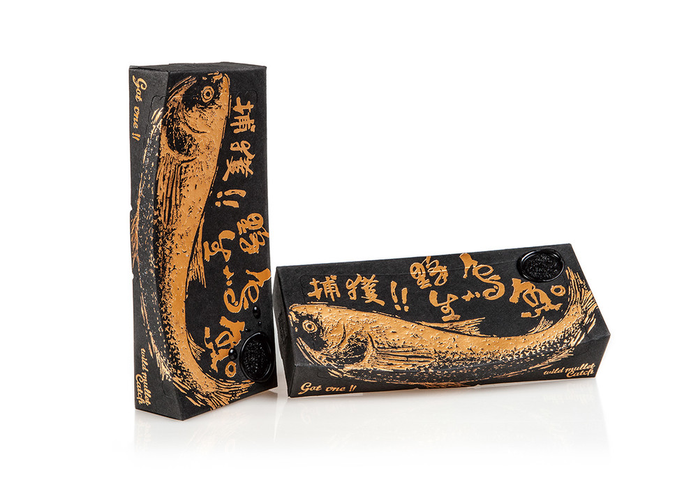 野生烏魚因其黑色背面而得名,因為臺灣的“吳”一詞有“黑”的意思。在冬季,每年都是野生烏魚的季節(jié),沿海的漁村被鋪上曬干的烏魚魚子的金色光芒所覆蓋。這就是為什么烏魚魚兒也被稱為海中的黑色黃金的原因。這意味著它對臺灣和中國大陸的烏魚產(chǎn)業(yè)所具有的經(jīng)濟地位?!俺尸F(xiàn)的一種烏金的視覺,劉經(jīng)緯以魚拓藝術(shù)形式將產(chǎn)烏魚的形體,在視覺上非常的突出。他這套包裝讓臺灣文化與民眾生活躍上國際視線。曾獲得2015的紅點獎。
