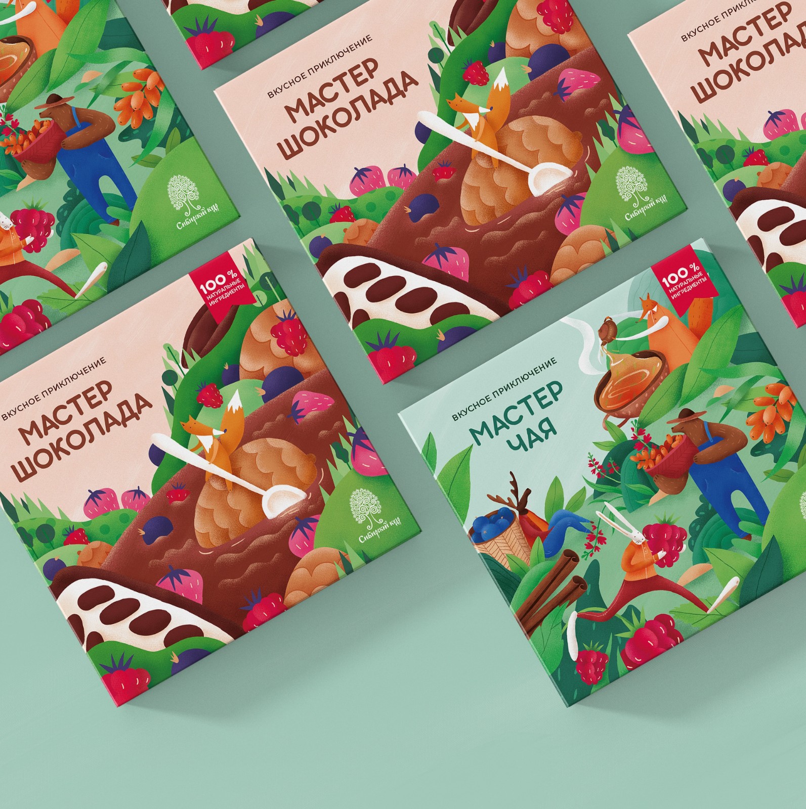 生態(tài)工廠“西伯利亞松”,俄羅斯最大的雪松堅(jiān)果糖果生產(chǎn)商。該公司推出了一系列用于制作巧克力和茶的禮品套裝。這條線的名字是“美味的冒險(xiǎn)”。這一套的名字是:“茶的主人”和“巧克力的主人”。設(shè)計(jì)應(yīng)該是同一風(fēng)格。使用風(fēng)格化的動(dòng)物,但它應(yīng)該看起來(lái)時(shí)尚有趣。