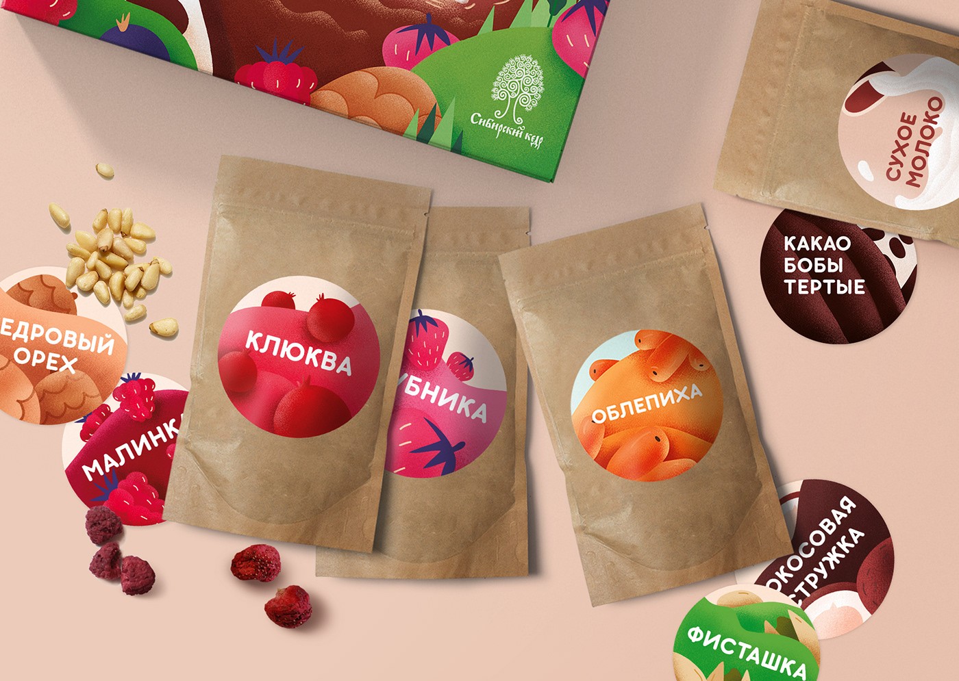 其他的產(chǎn)品包裝設(shè)計(jì)有:雪松堅(jiān)果西伯利亞雪松,松子仁、干蔓越莓、堅(jiān)果醬、茶、禮盒套裝:"西伯利亞的禮物“、巧克力大師、茶大師,