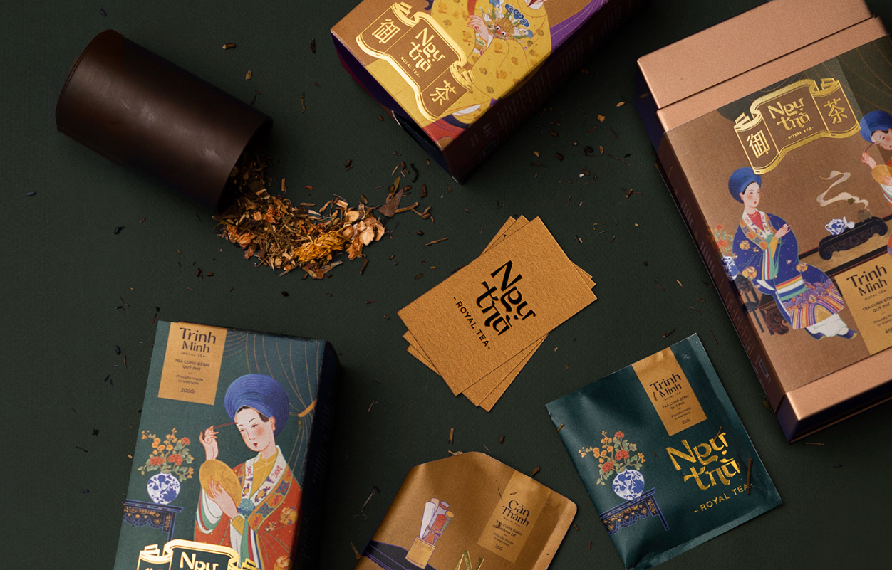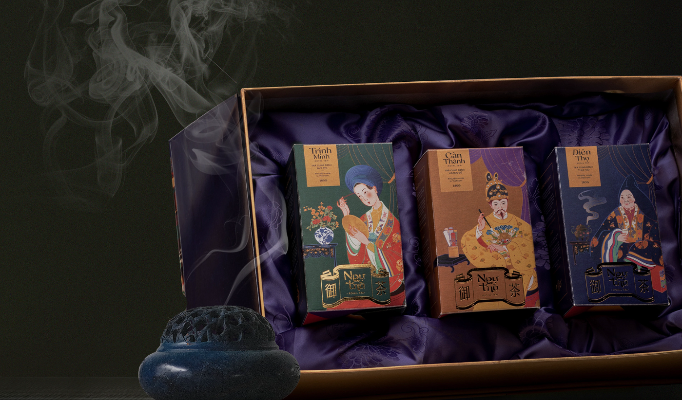 順化的皇家文化曾經(jīng)是越南最大的文化,但一直不太好知道。在這個項目,我想把皇家文化帶給西貢的人們更加熟悉,于是我開發(fā)了一個品牌標識“Ng?Tráa”--皇家茶。