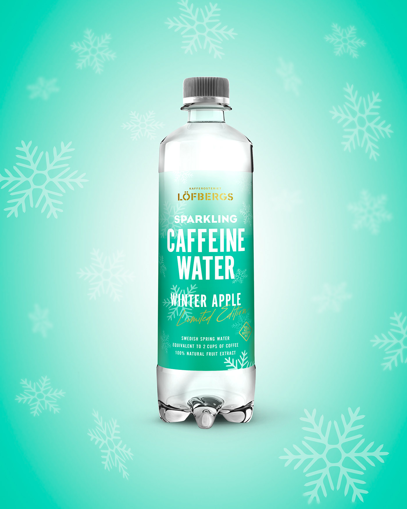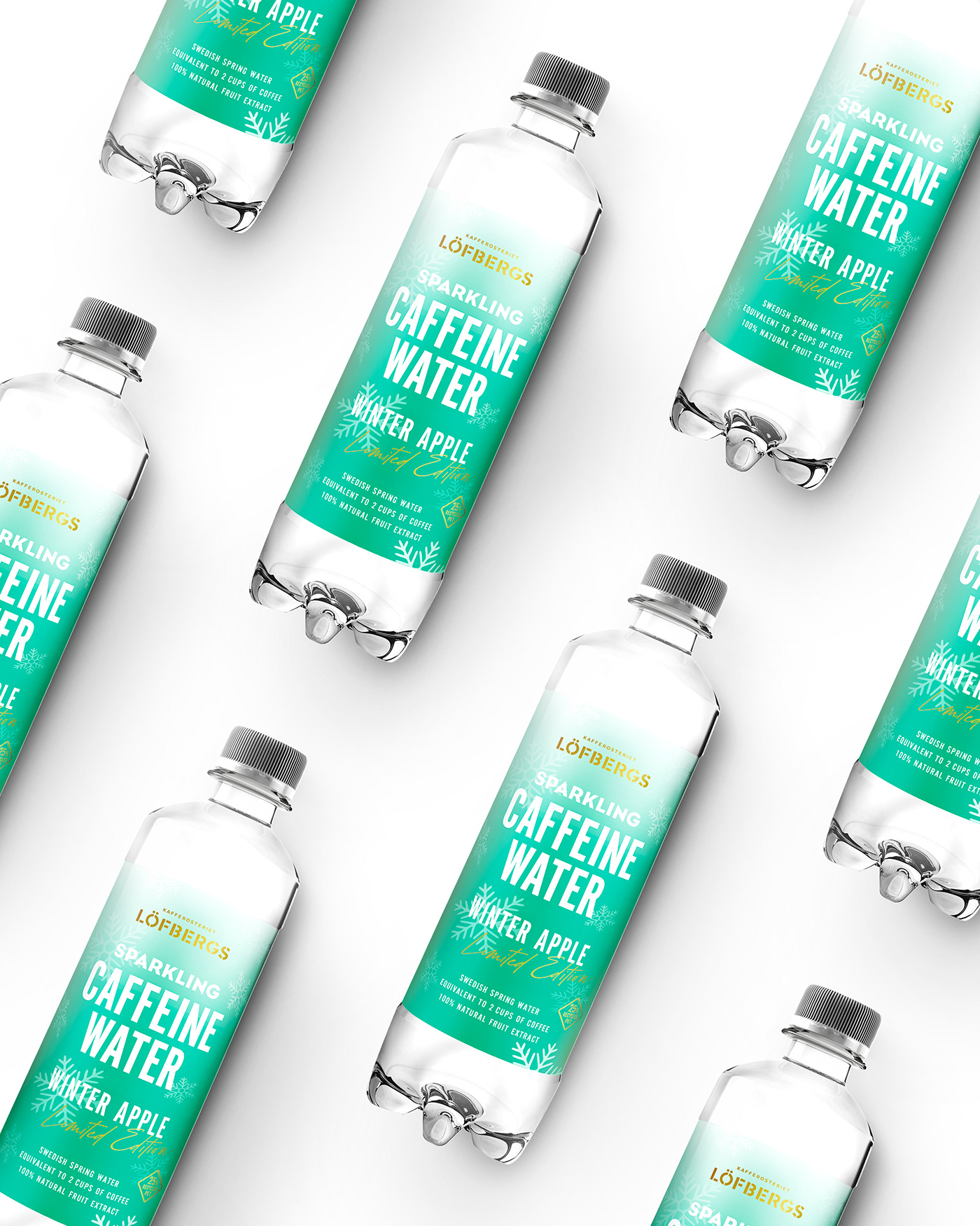 咖啡因清爽水包裝設(shè)計(jì),可以用來(lái)補(bǔ)充水分解渴和提神。Limited Edition限量版,冬季蘋果采用瑞典泉水和水果提取物制成,帶來(lái)有益身心的體驗(yàn)。這種新鮮感在限量版包裝設(shè)計(jì)中得到了體現(xiàn),在同等程度上明亮而清涼。(汽泡水)