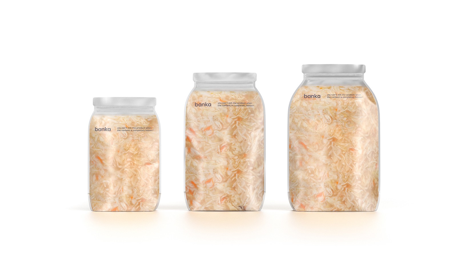 Banka具有經(jīng)典玻璃罐的形狀,在其中可以看到產(chǎn)品本身。提供了不同數(shù)量的軟包。這種形狀便于存放在冰箱中和運(yùn)輸過程中。提供了一個(gè)拉鏈鎖以確保牢固。