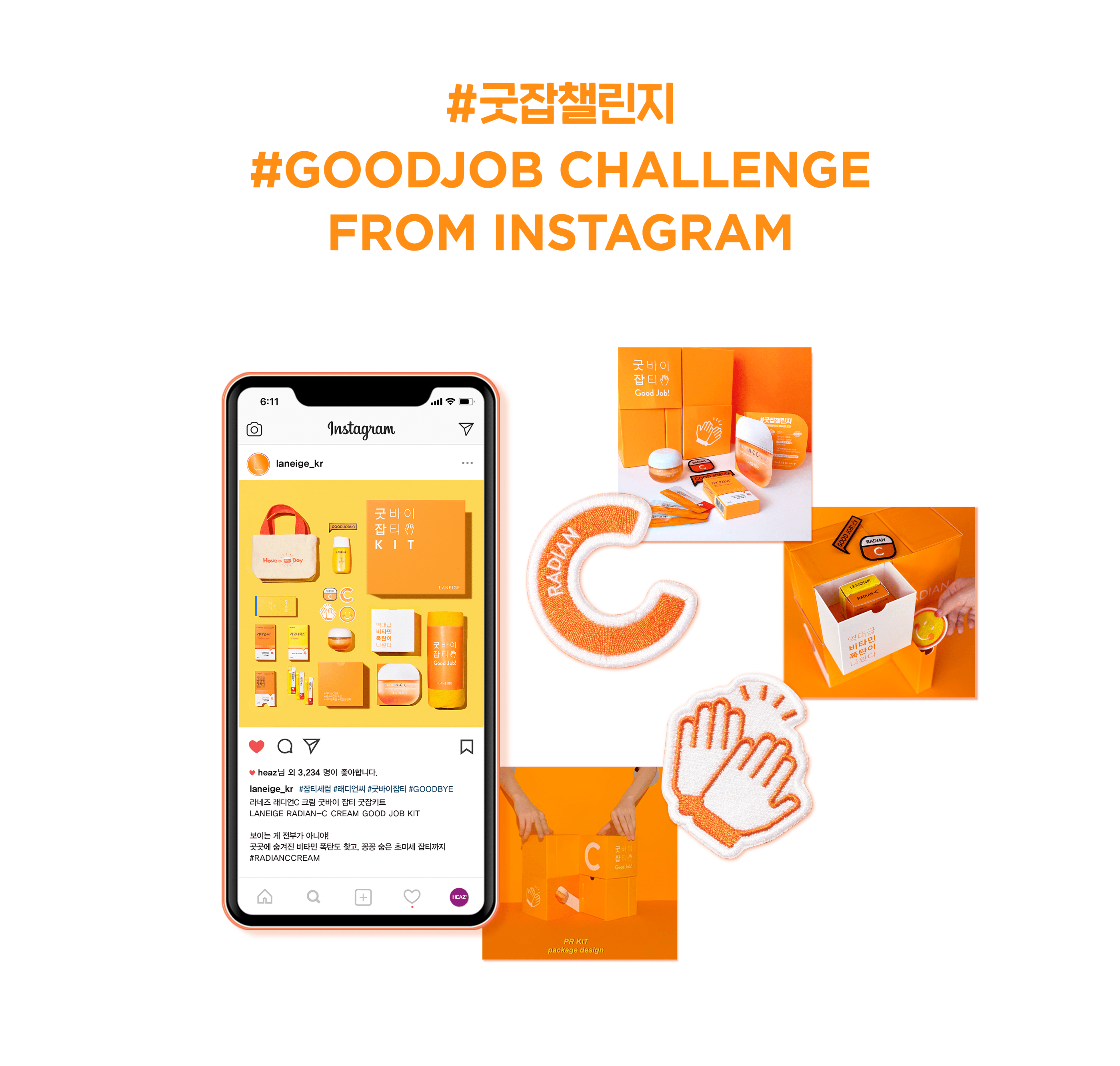 LANEIGE已發(fā)布新產(chǎn)品RADIAN-C CREAM,并已通過影響者認(rèn)證產(chǎn)品評(píng)論,并在Instagram舉辦了“ Good Job Challenge”。我們?cè)O(shè)計(jì)了該套件,以提供給成功完成挑戰(zhàn)的人。