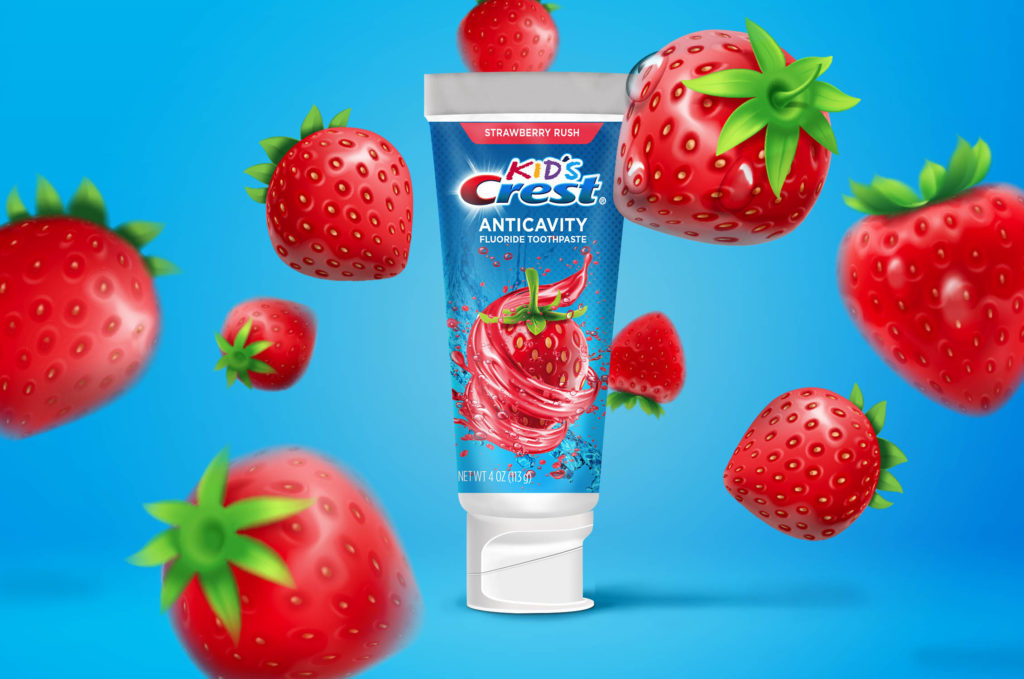 寶潔公司正在準備推出草莓味的口腔護理產(chǎn)品系列,并要求其包裝具有獨特的補間吸引力。
