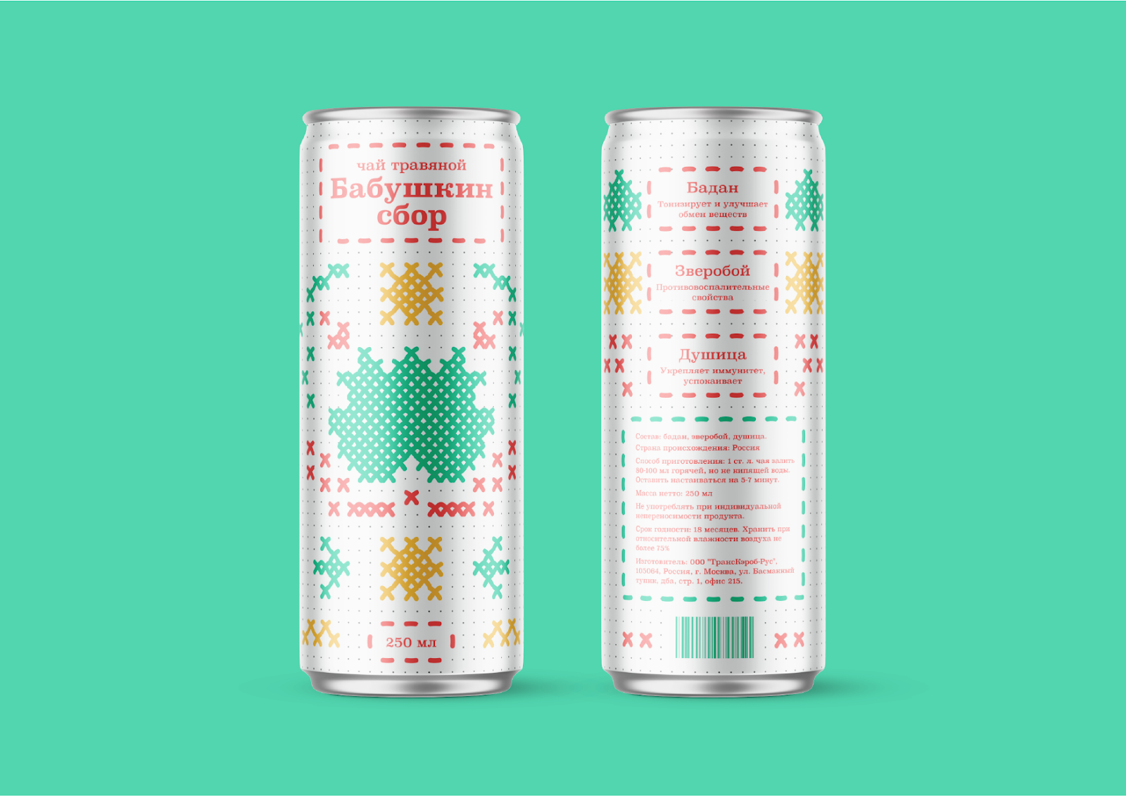 “祖母的收藏”是一個(gè)冰茶品牌。對(duì)于現(xiàn)代人來(lái)說(shuō),這是一種飲料,他們想念與祖母在村子里度過(guò)的童年,并想再次品嘗她釀造的芬芳的涼茶。設(shè)計(jì)靈感來(lái)自我們祖母繡的十字繡和圖案。