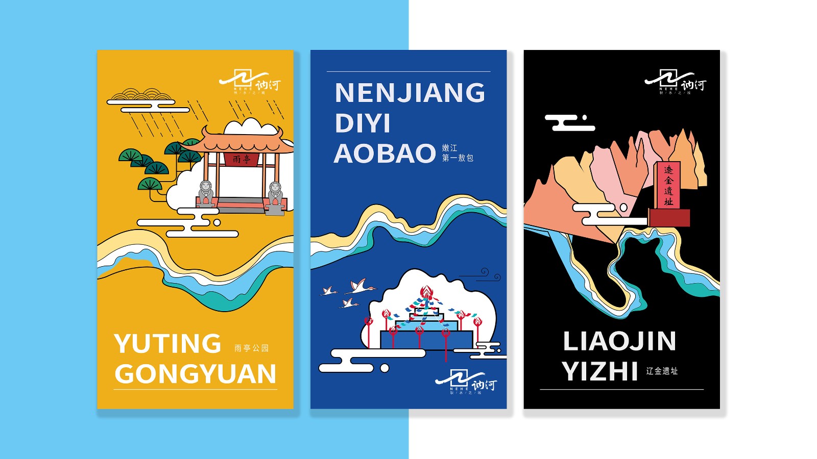 品牌色輔助圖形(品牌插畫)雨亭公園、嫩江第一敖包、遼金遺址