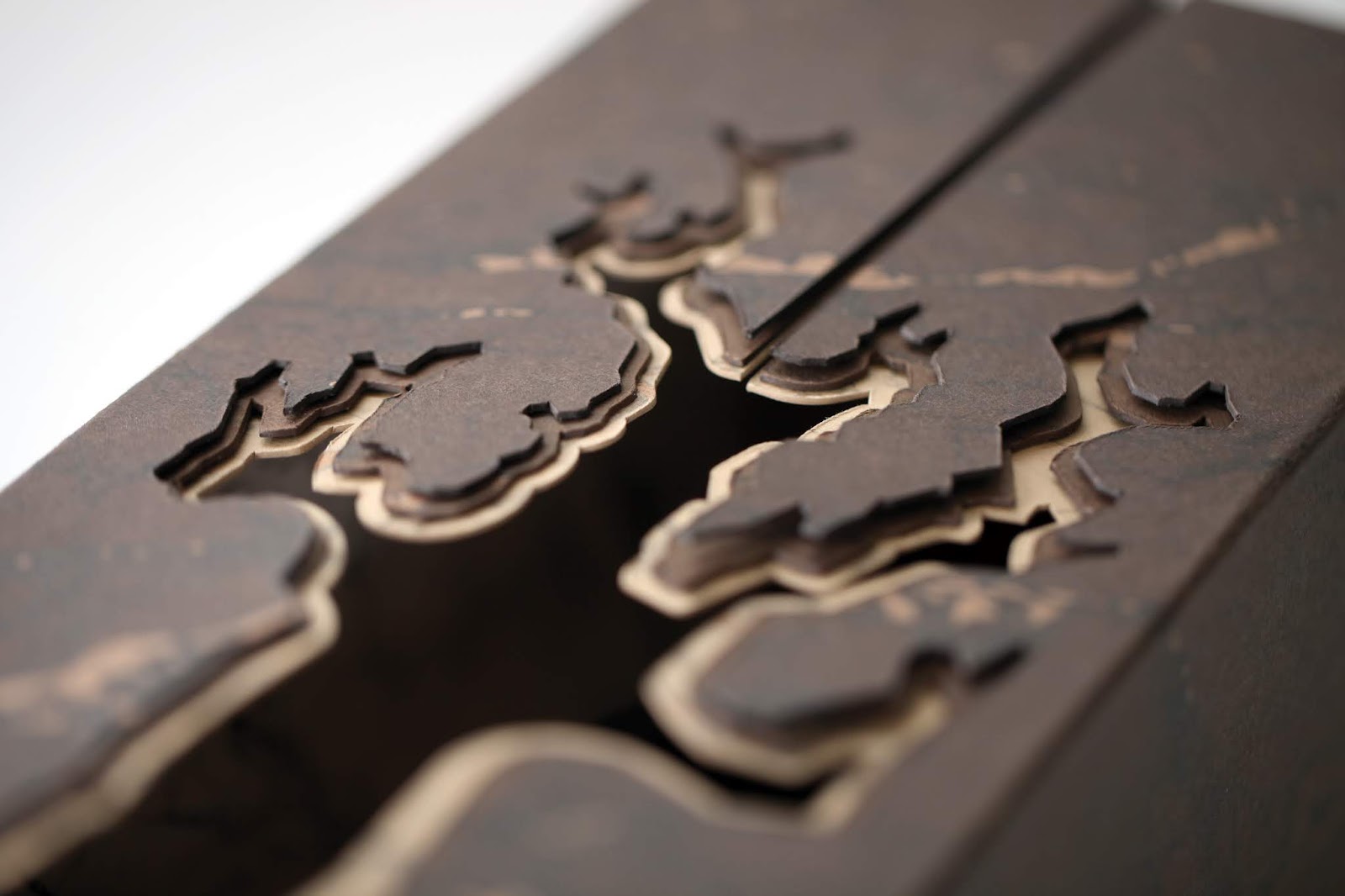 這款伏特加酒的酒盒則是巧妙組合,三合一包裝展示,每一款都有一個(gè)獨(dú)特的指紋,寓意著每一款都是限量獨(dú)特的酒,印刷包材:鐳射銀卡,正面指紋工藝用了起鼓,局部UV,指紋則面用了透印方式,將指紋五顏色六彩呈現(xiàn),在不同光線(xiàn)會(huì)有變化,非常有意思。