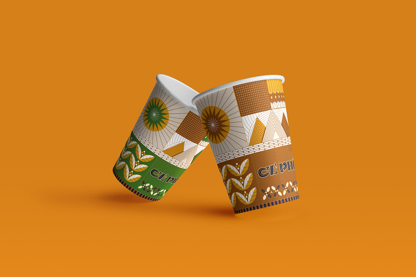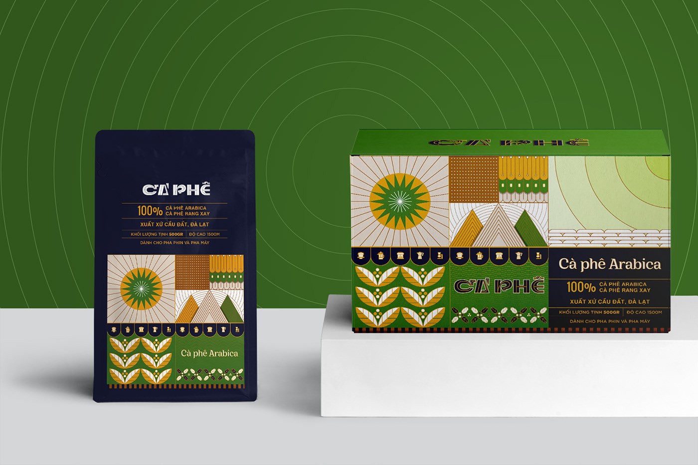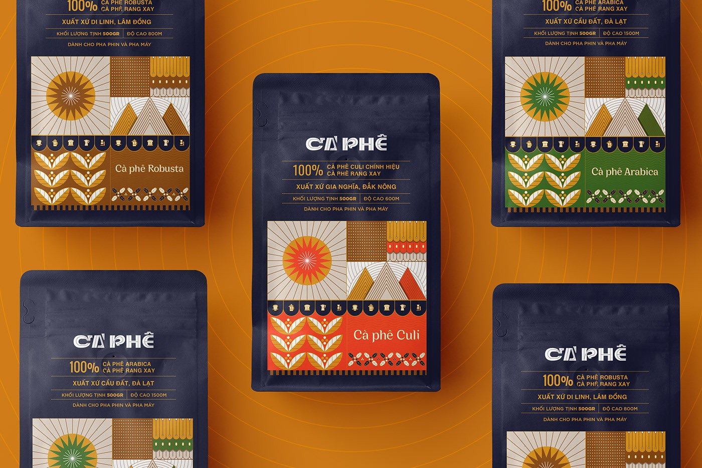關(guān)于標(biāo)志,字體以咖啡作為標(biāo)志,根據(jù)居住在中部高地高地(如達(dá)農(nóng)、林同)的人們的文化和風(fēng)格進(jìn)行風(fēng)格化。字體風(fēng)格化,以增加咖啡包裝的身份和美感。