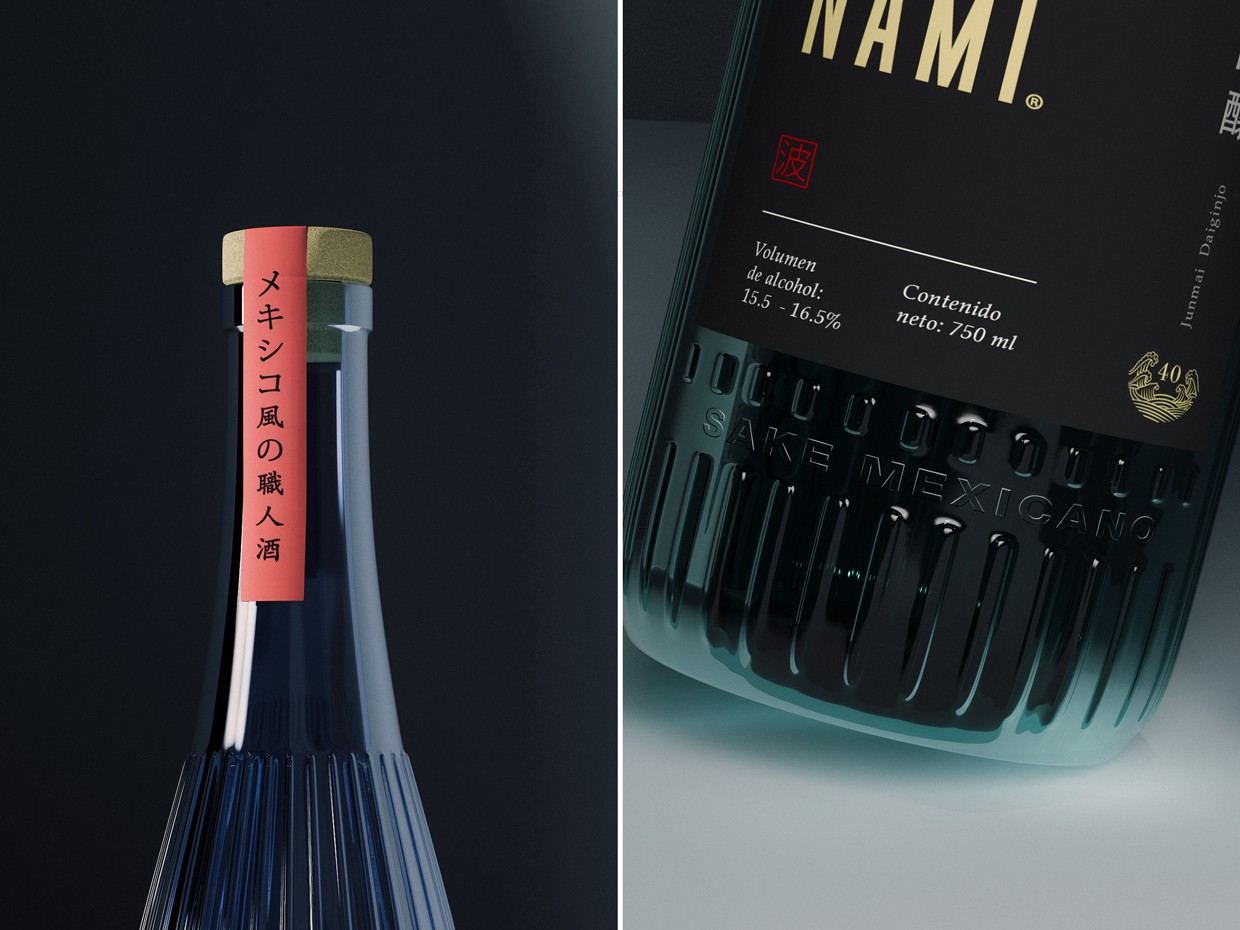 我們有幸設(shè)計(jì)了第一版 NAMI?“第一墨西哥清酒”,因此我們受邀為其第二版實(shí)施概念。在這個(gè)新提案中,我們?cè)O(shè)計(jì)了包裝(玻璃瓶)和標(biāo)簽,力求融合日本 + 墨西哥的概念。在瓶子上,我們使用凸起的線(xiàn)條來(lái)模擬古代發(fā)酵清酒的木桶的幾何形狀,同樣我們按照顏色類(lèi)別劃分不同級(jí)別的米油,靈感來(lái)自墨西哥風(fēng)格的歡快范圍。